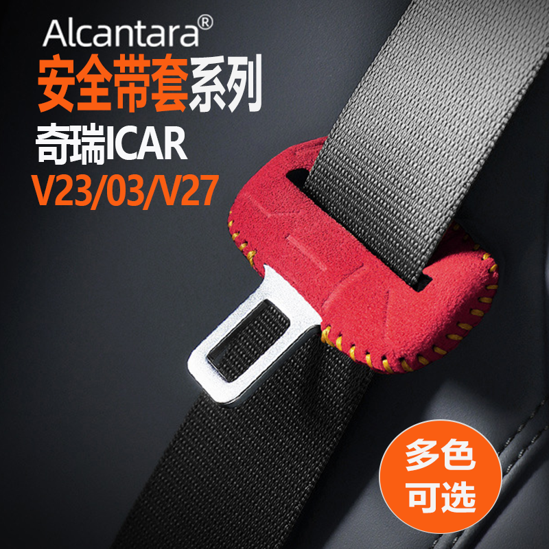 📚 奇瑞iCAR V27安全带扣套保护套V23防撞03保险带扣防护翻毛皮装饰
