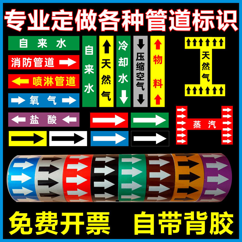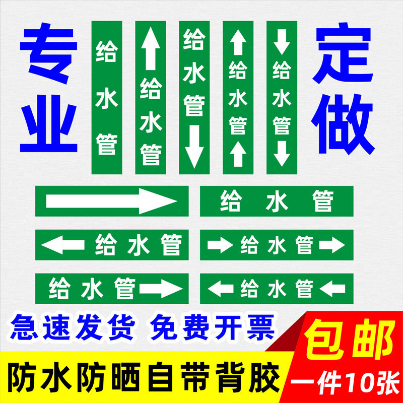 📚 给水管道标识贴消火栓管道标识贴喷淋管道标识贴定做聚乙烯反光膜管道标识流向箭头贴贴纸定做