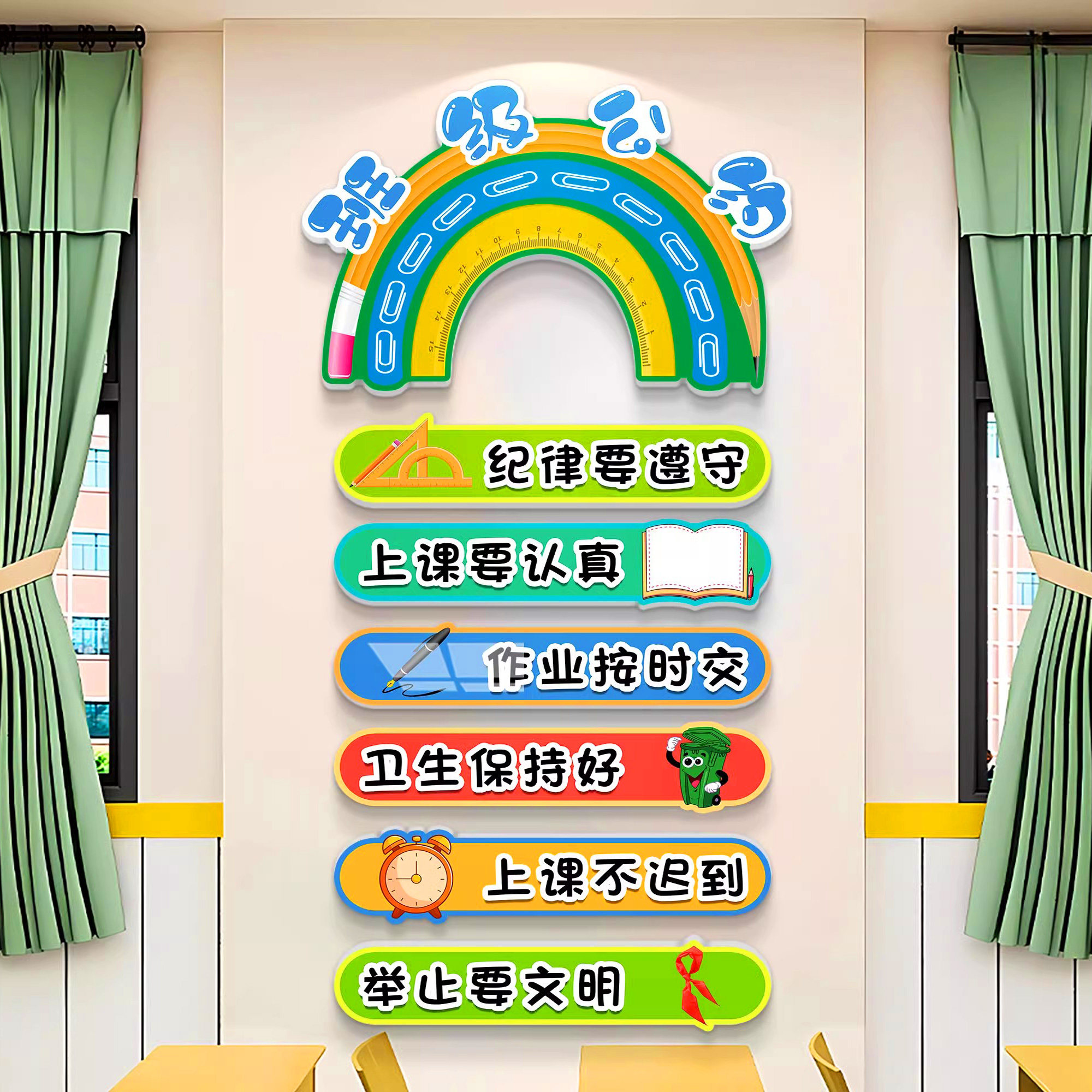 📚 班级公约挂牌幼儿园中小学教室布置装饰文化墙面贴纸班规班训挂画