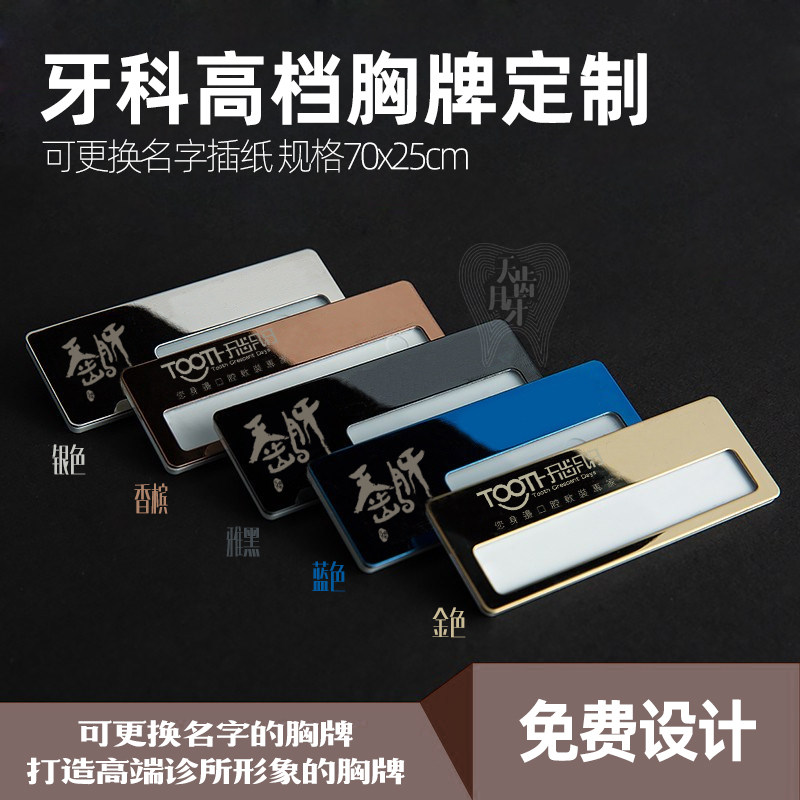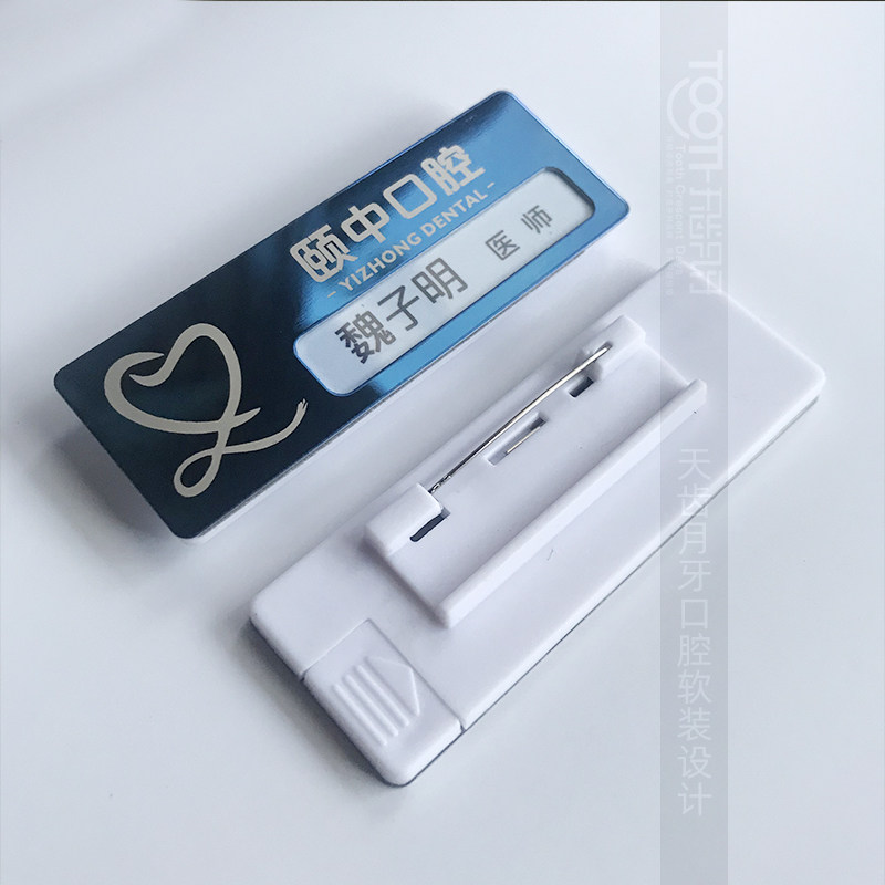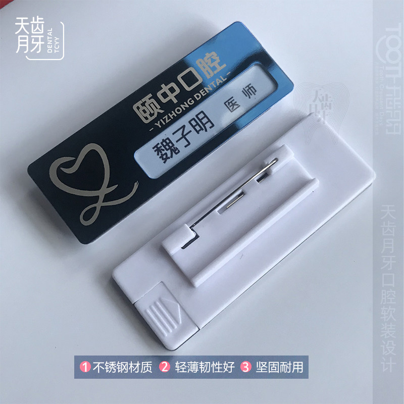 📚 口腔胸牌金属别针胸牌70x20可更换医护名字胸牌医院诊所胸牌