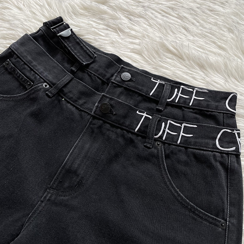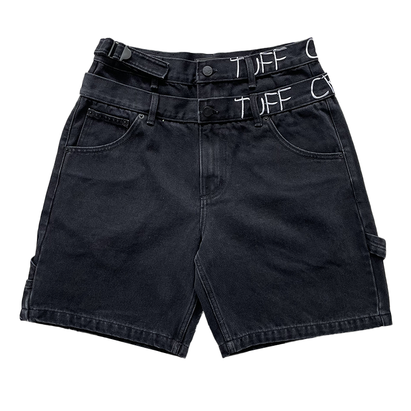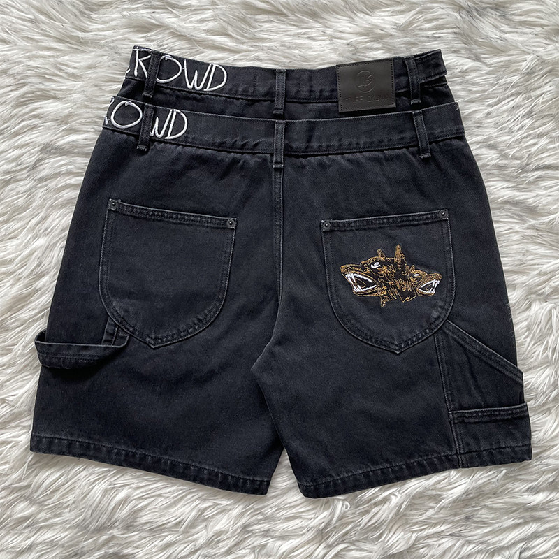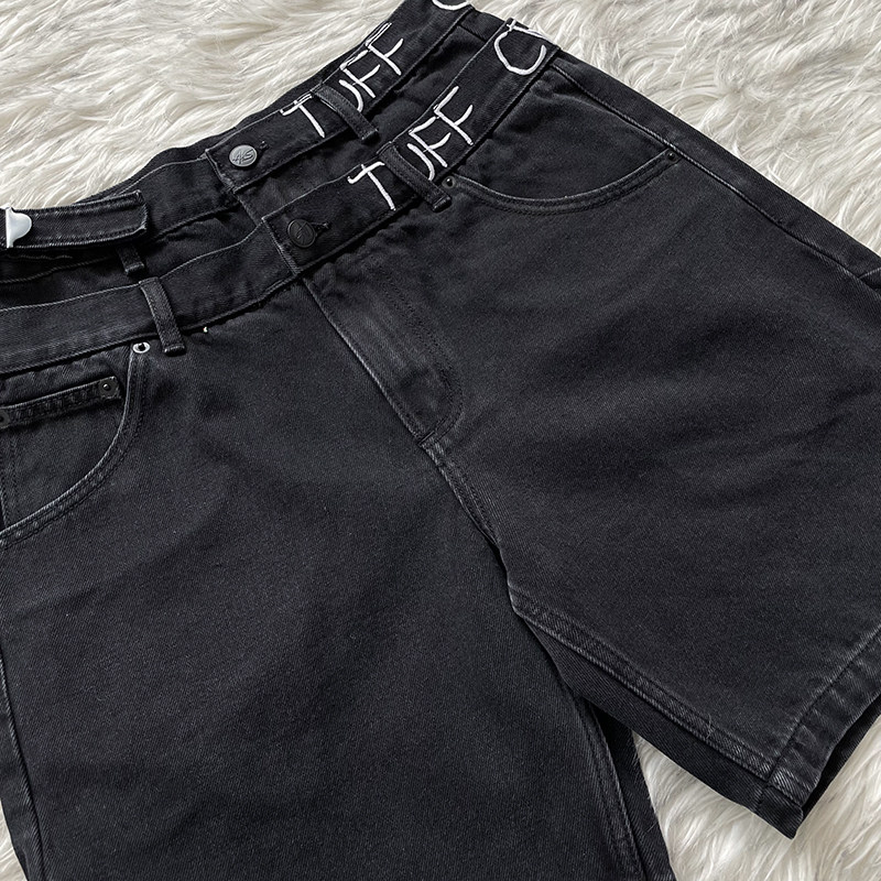 📚 TUFF CROWD 美式高街小众设计刺绣黑色休闲牛仔短裤