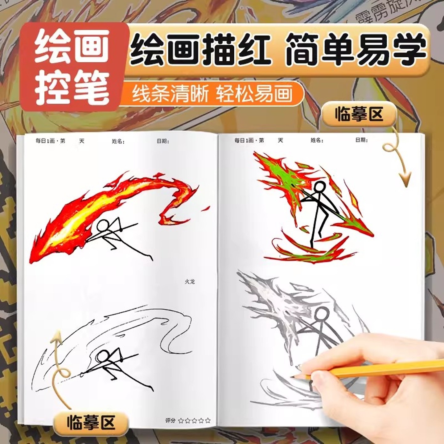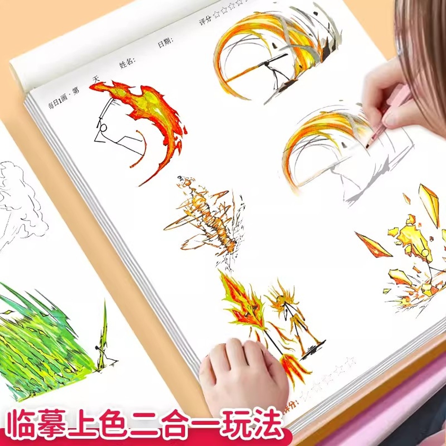 📚 火柴人绘画教程书元素战纪战争画描本漫画书绘画本描摹本线描素描本技能书卡通儿童临摹男孩涂鸦漫画画本涂色