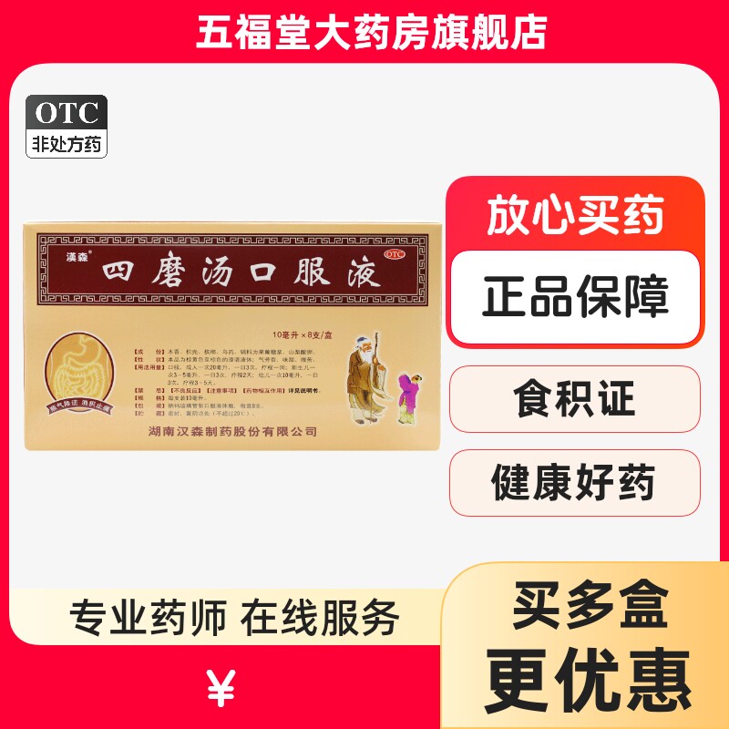 📚 汉森四磨汤口服液10ml*8支儿童腹胀腹痛拉肚子便秘中老年人便秘药
