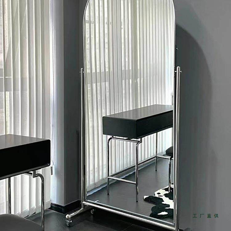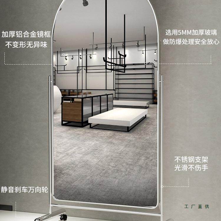📚 不锈钢全身镜穿衣镜落地镜家用服装店镜子可移动试衣镜显瘦美颜