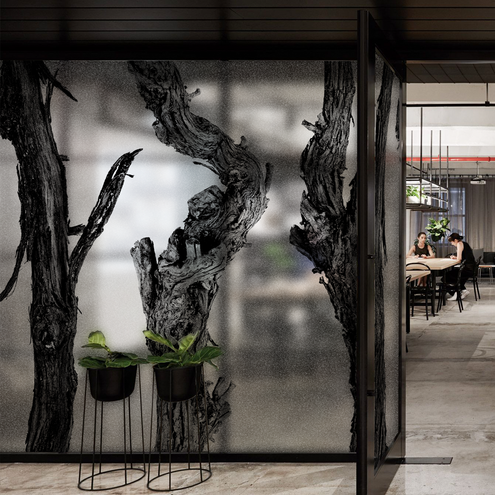 📚 森系风景静电磨砂玻璃贴纸装饰森林实景艺术办公室推拉门贴膜防窥