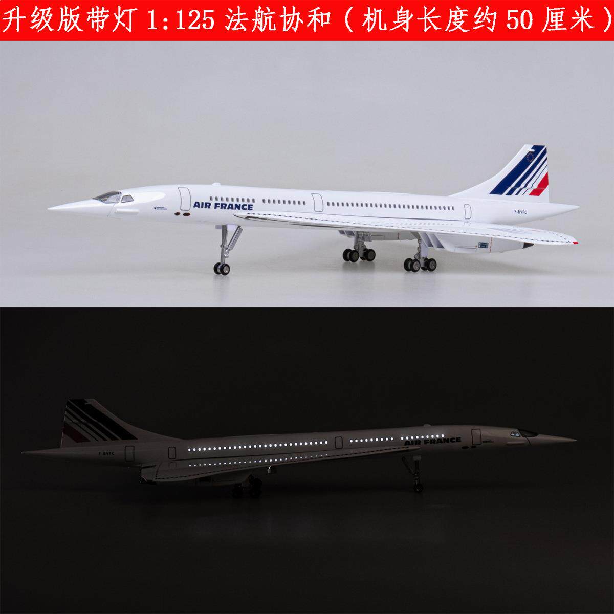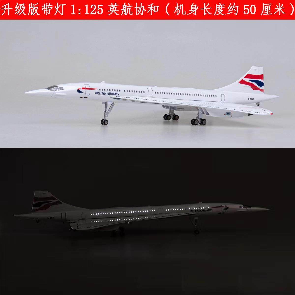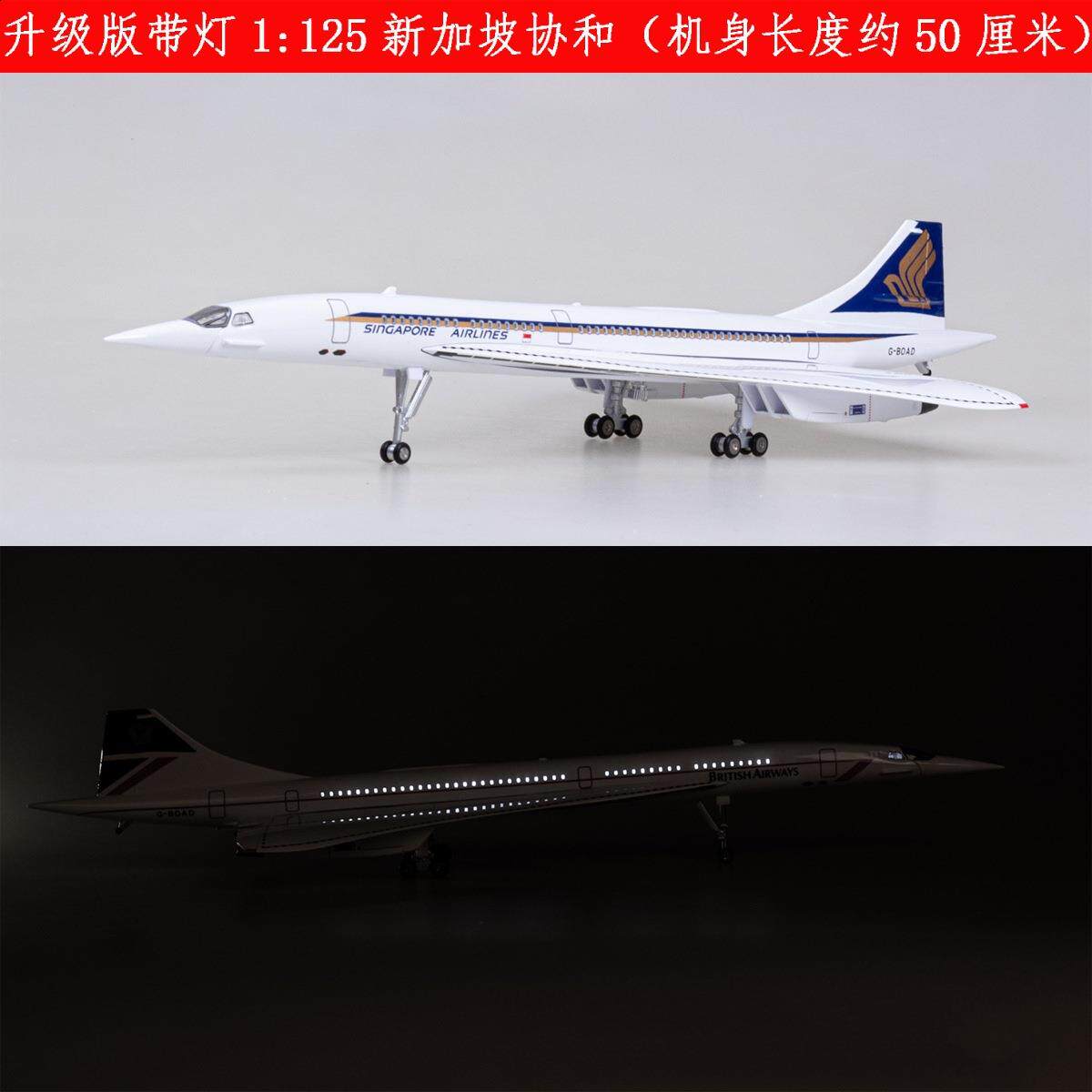 📚 新加坡航空法航英航协和客机1:125带灯带轮50cm仿真飞机模型协合