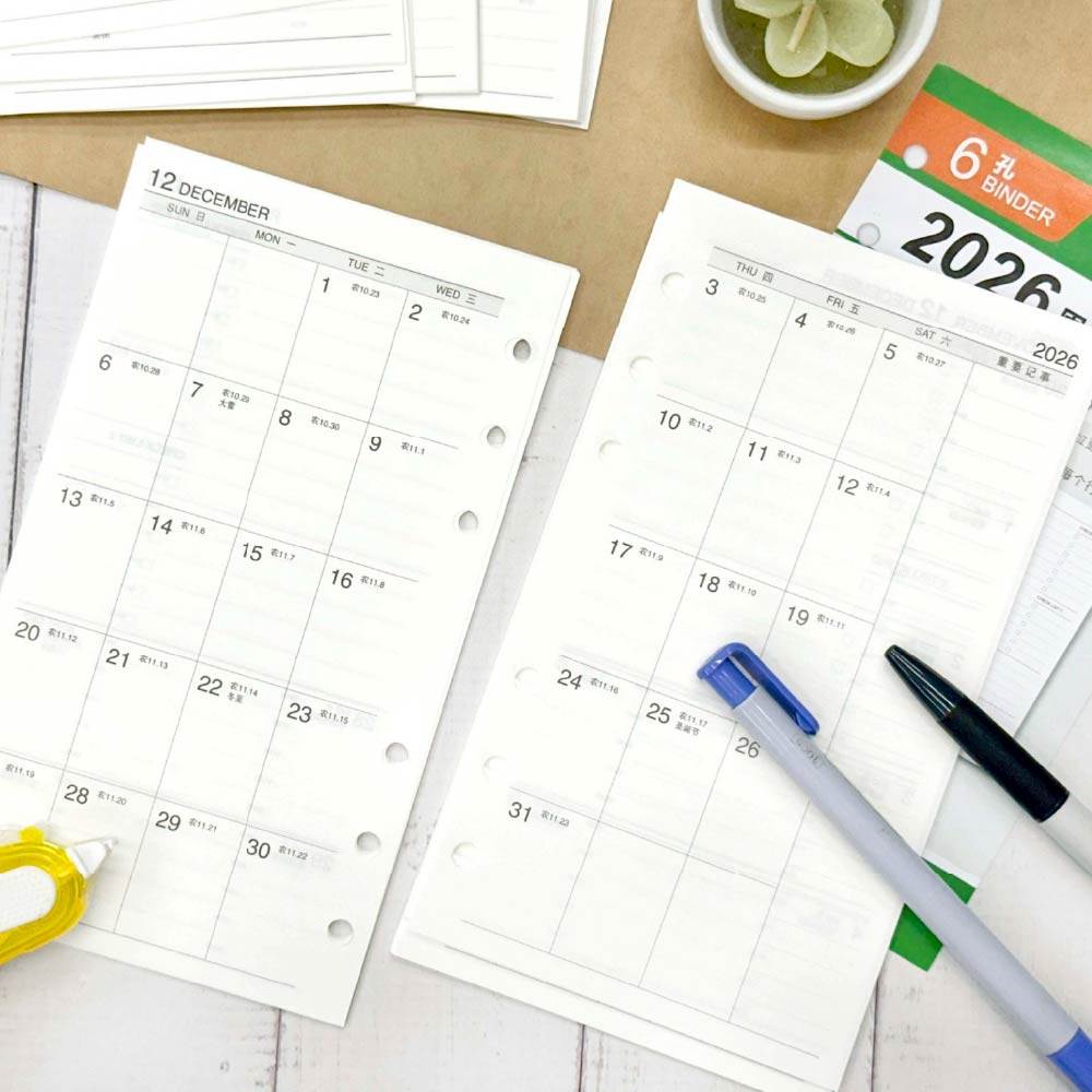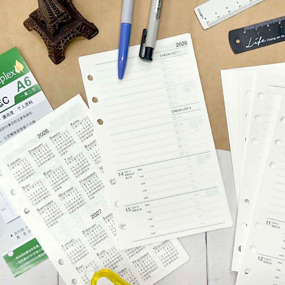 📚 台湾四季2026年日程本活页芯A6计划本活页纸 效率手册活页替芯活页笔记本子记事本内页 日计划 周计划 月计划