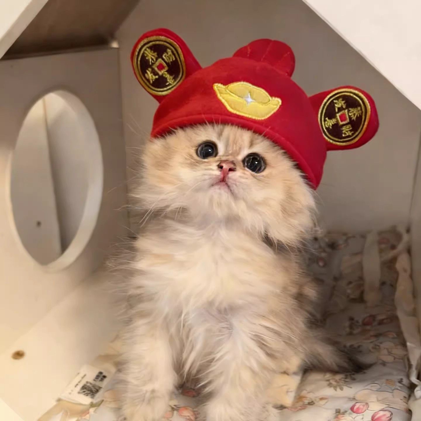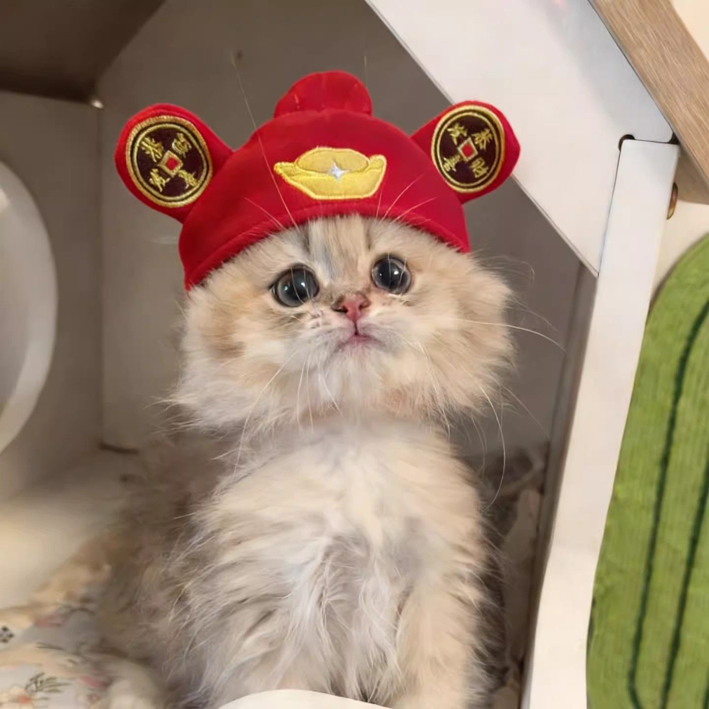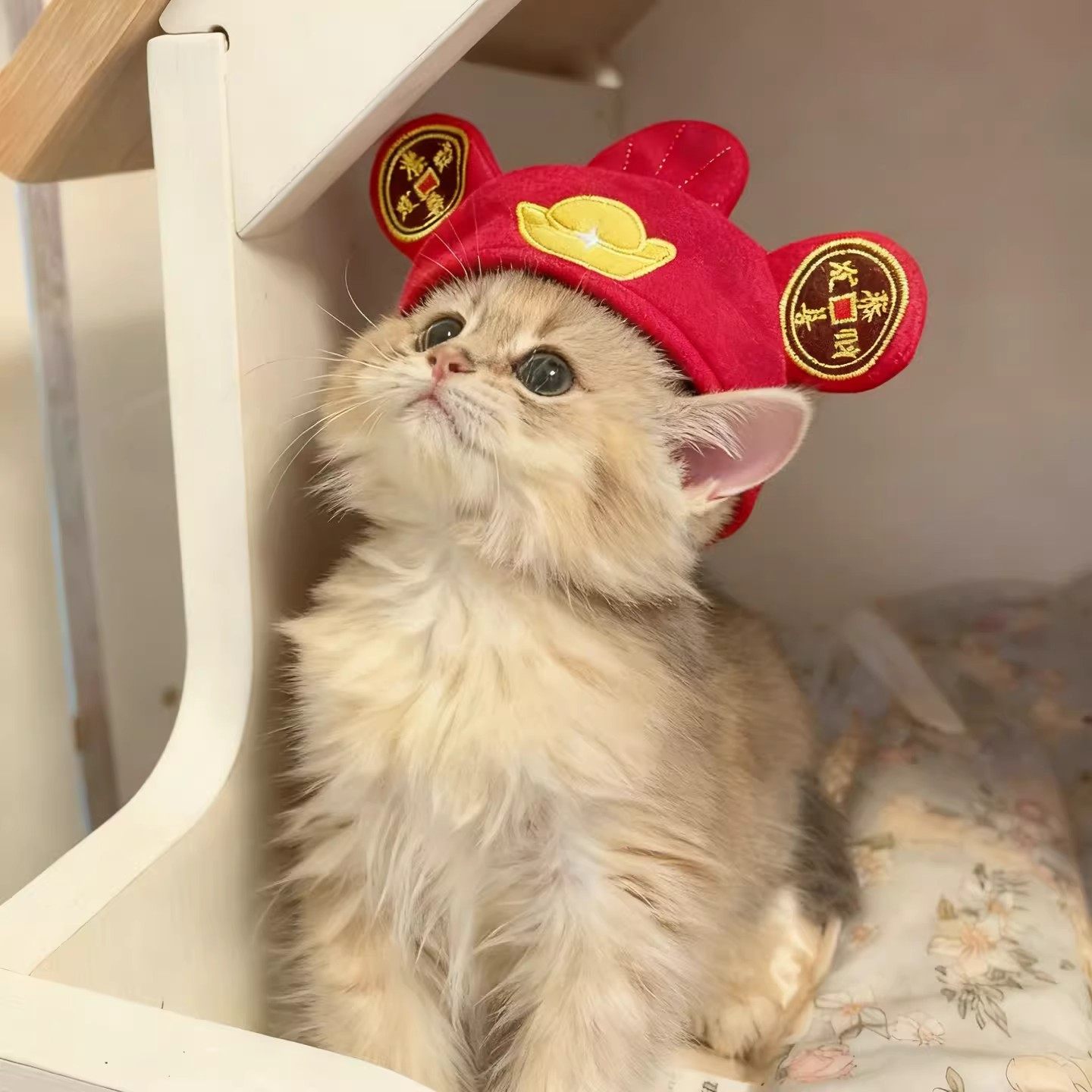 📚 宠物小猫帽子财神变装帽小狗猫咪拜年保暖喜庆搞怪露耳朵毛绒头套