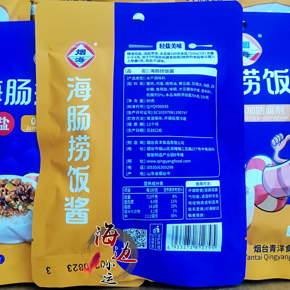 📚 烟台特产烟海正品海肠捞饭酱轻盐不减味即食袋拌饭料拌面无海肠块