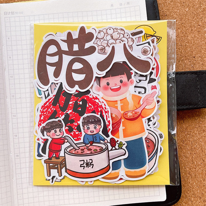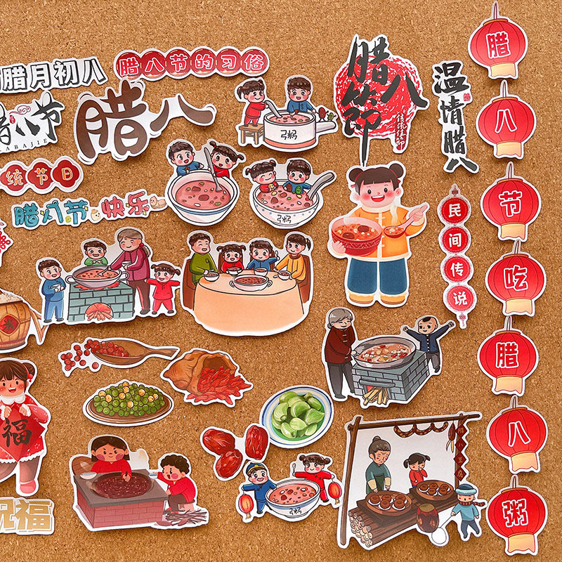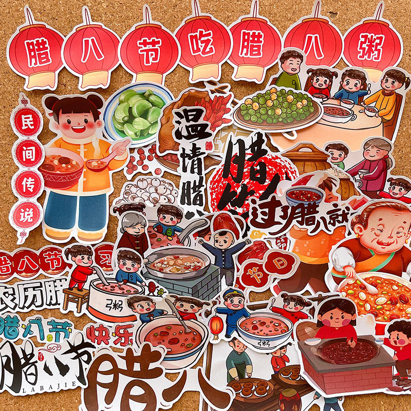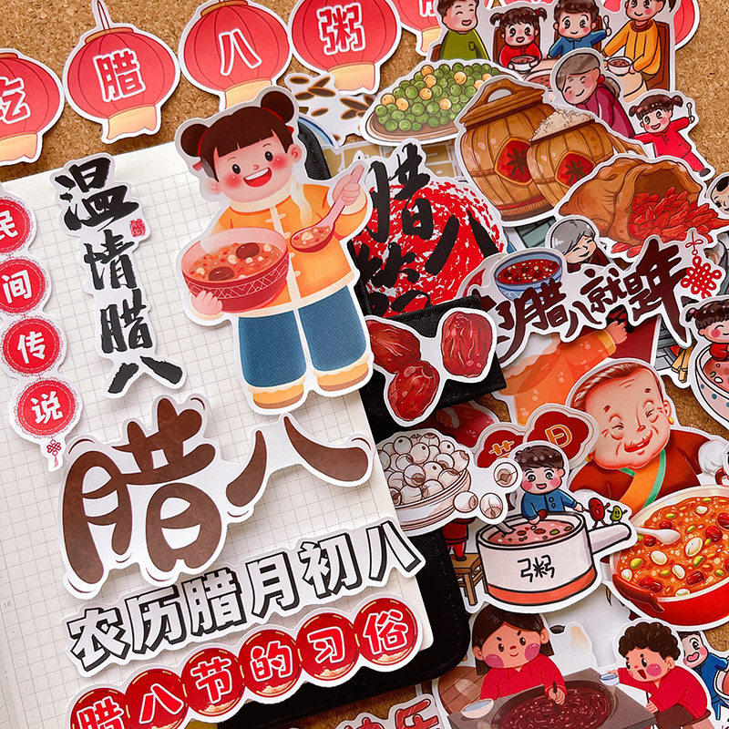 📚 腊月节腊八粥民俗主题贴纸套装DIY装饰手账贴画卡通可爱贴纸包中国传统节日习俗手抄报识字报剪报独立粘贴