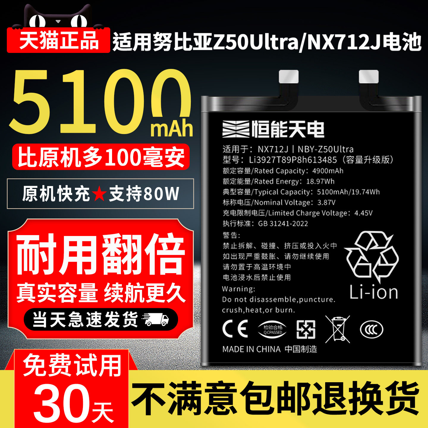 📚 恒能天电适用【努比亚Z50Ultra电池】大容量 Nubia 努比亚Z50SPro更换手机NX713J内置魔改扩容电板电芯NX712J
