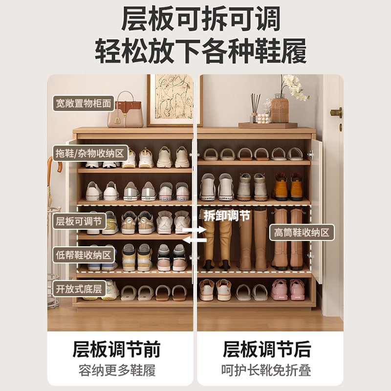 📚 高120CM实木鞋柜家用门口入户收纳一体靠墙门外走廊电梯口大鞋架