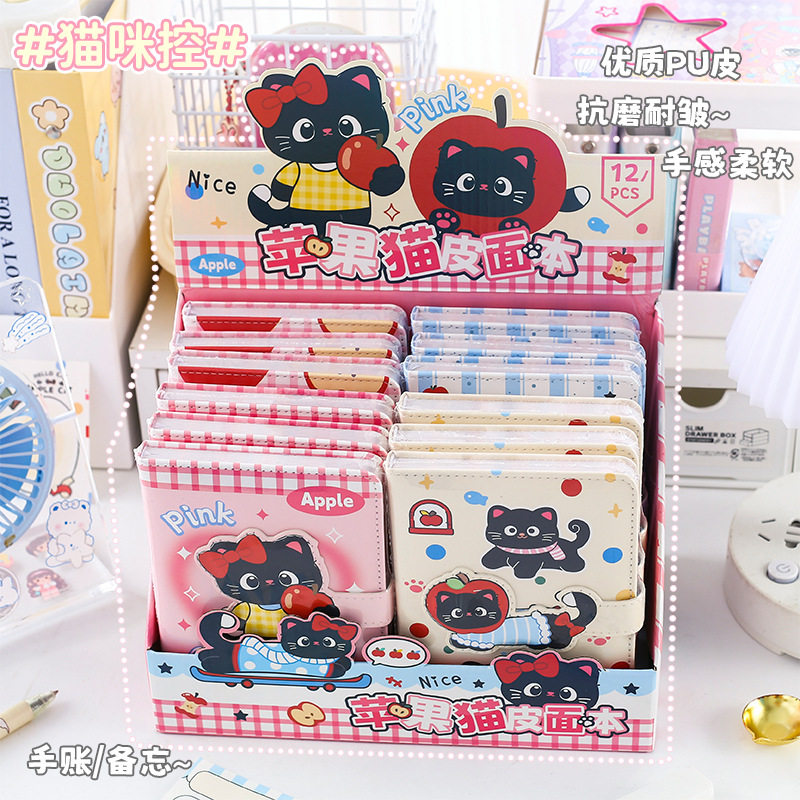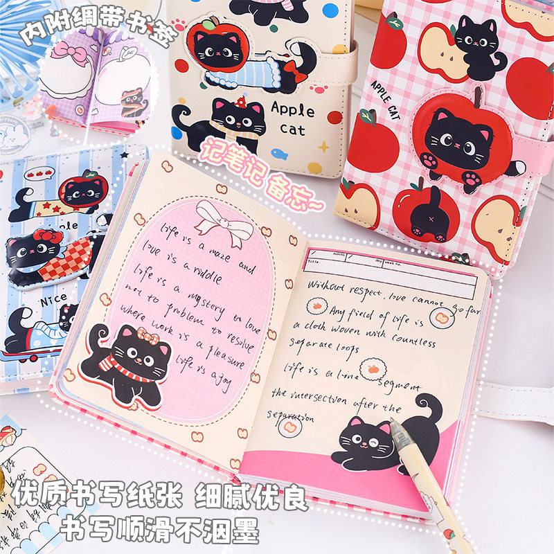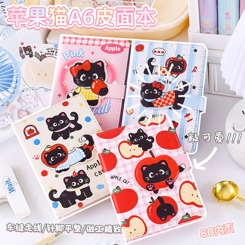📚 苹果猫异形磁扣本小学生高颜值可爱少女心A6软皮笔记本子记事本高中用全彩卡通内页口袋手帐本女孩生日小礼物