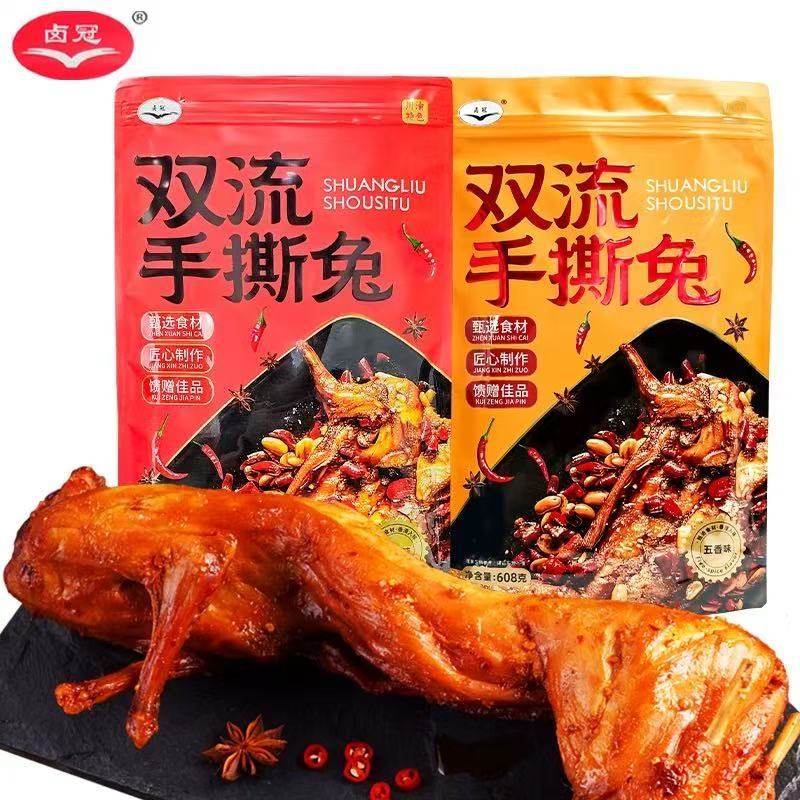📚 双流手撕兔608g卤冠大礼包香辣五香冷吃兔老成都零食小包装兔肉干