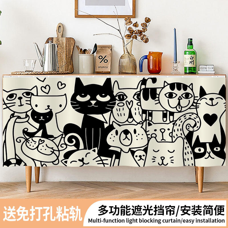 📚 柜子帘子遮挡杂物橱柜防尘门帘厨房免打孔遮丑拉帘鞋架滑轨式布帘