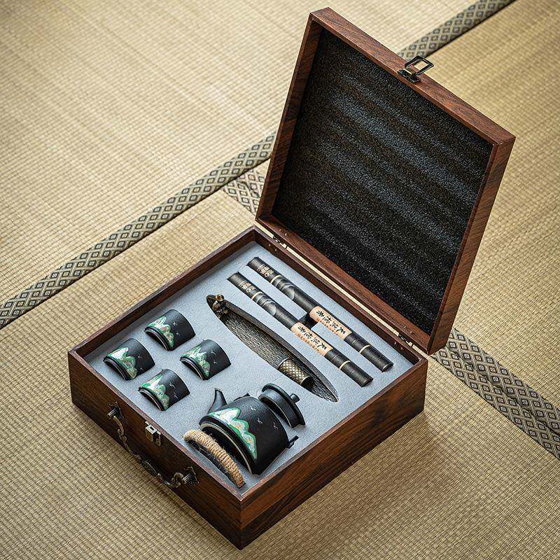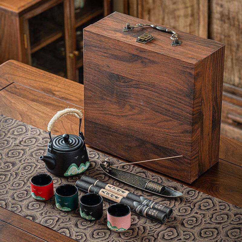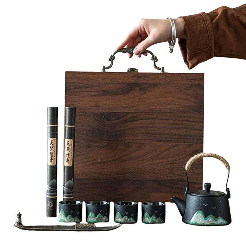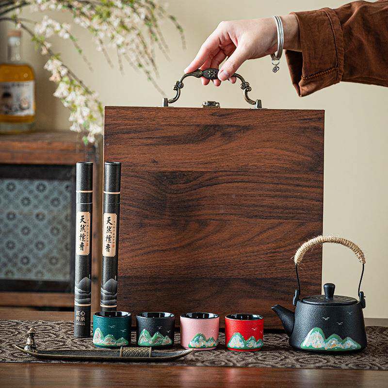 📚 远山文创陶瓷茶四方木箱具套装国潮节礼品茶杯公司年商会务日礼o
