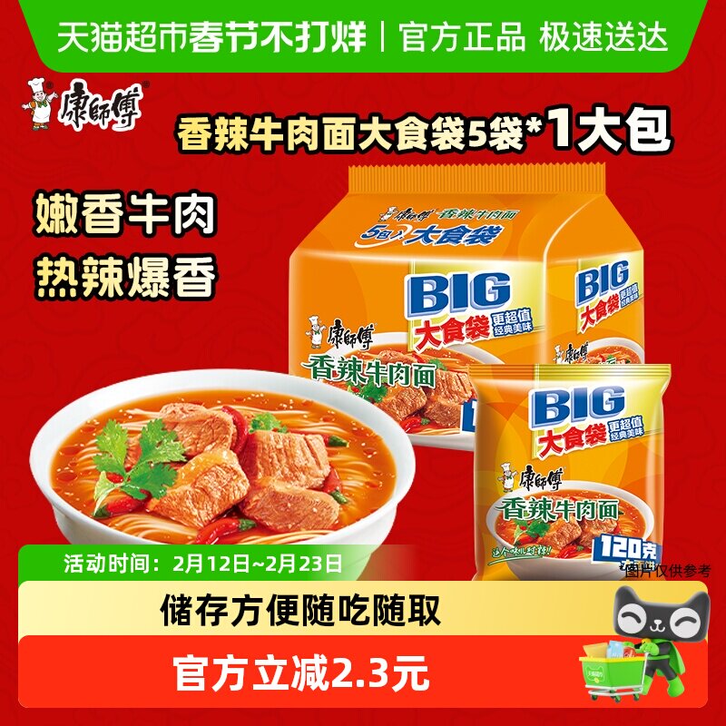98¥ tG-#22>lD 1GbSUMG2I8y¥ https://m.tb.cn/h.7CscKh9 康师傅方便面大食袋香辣牛肉面袋装泡面速食食品 --------------------- 【原售价】18.9元 【现售价】18.9元。