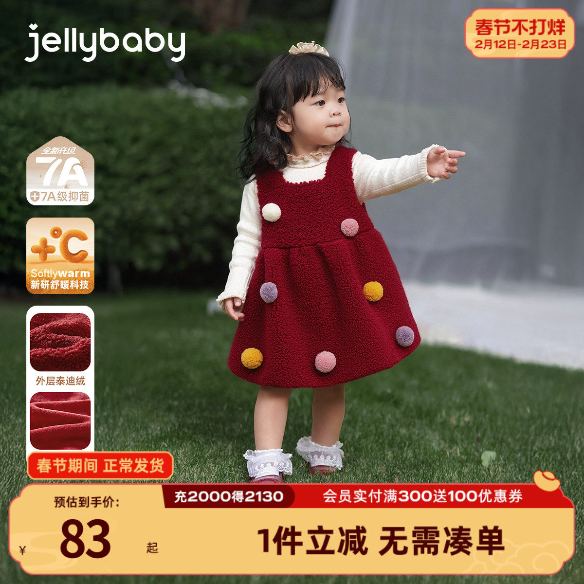 98¥ HU071 klw8ULWknBW¥ https://m.tb.cn/h.7yNe33x [抑菌锁温]公主裙女童连衣裙秋冬儿童加绒裙子新年宝宝红色冬装 --------------------- 【原售价】80元 【现售价】43.9元。