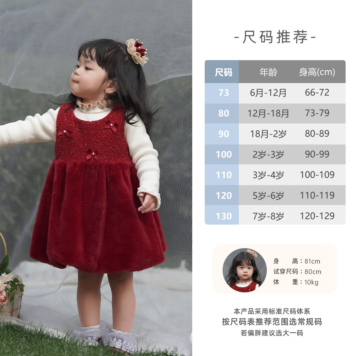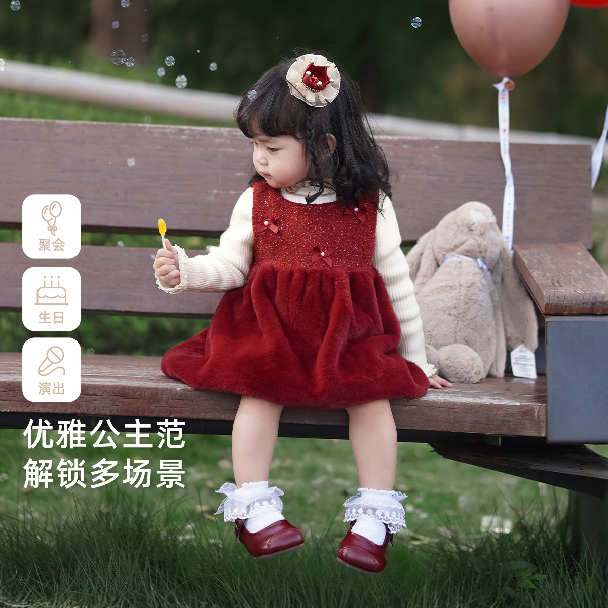 📚 [抑菌锁温]公主裙女童连衣裙秋冬儿童加绒裙子新年宝宝红色冬装