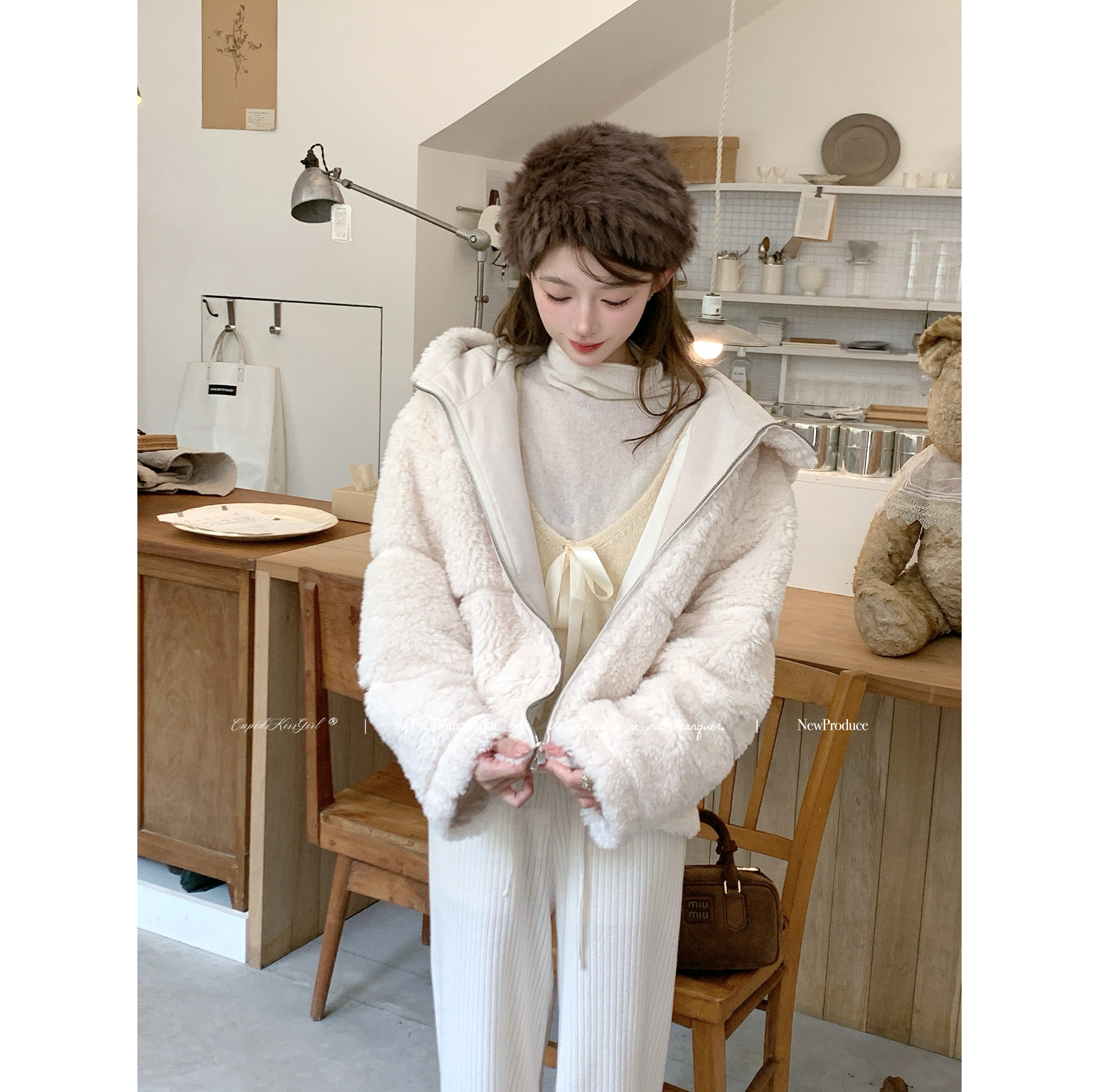📚 【福利65折清仓】csk丘比特 “奶油核桃塔walnut”毛绒连帽厚外套
