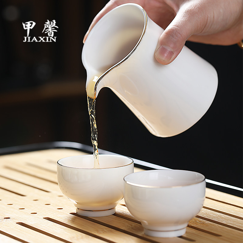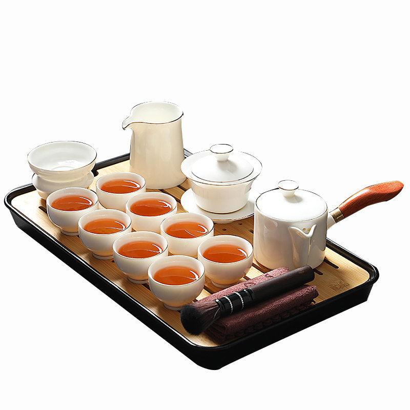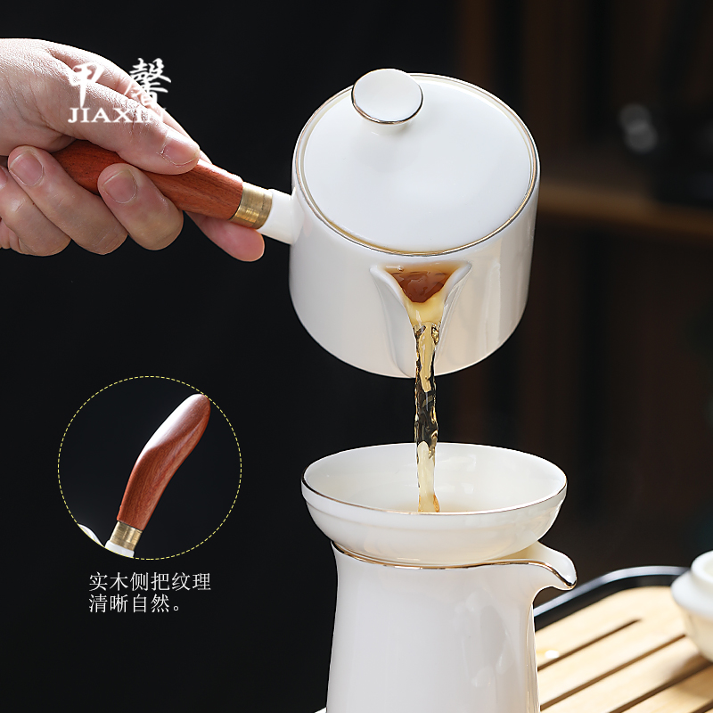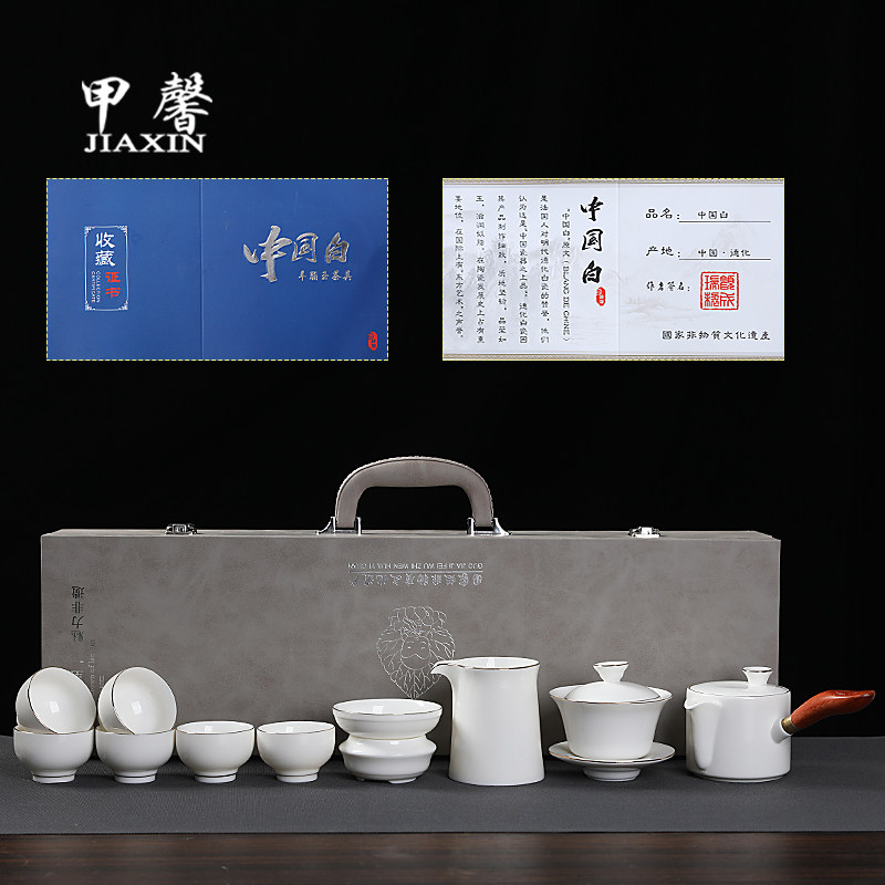 📚 德化白瓷茶具套装家用高档描金侧把茶壶羊脂玉瓷泡茶盖碗茶杯礼盒
