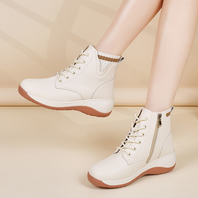 📚 侧拉链短靴真皮女鞋软底防滑新款2026秋冬中年妈妈鞋女高帮小白鞋