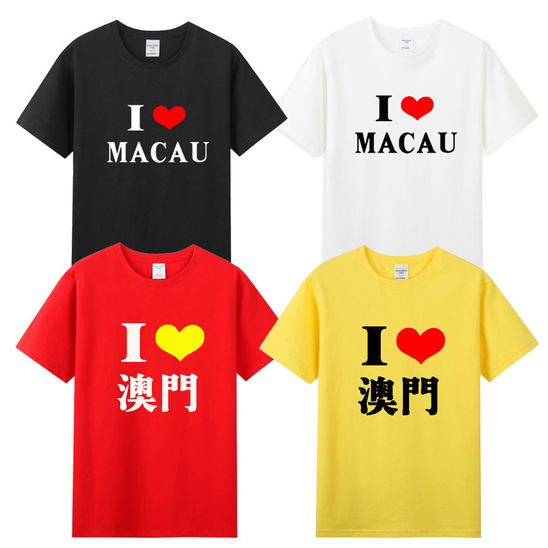 📚 我爱澳门Macau短袖T恤 旅游纪念文化衫男女纯棉衣服定制城市名字