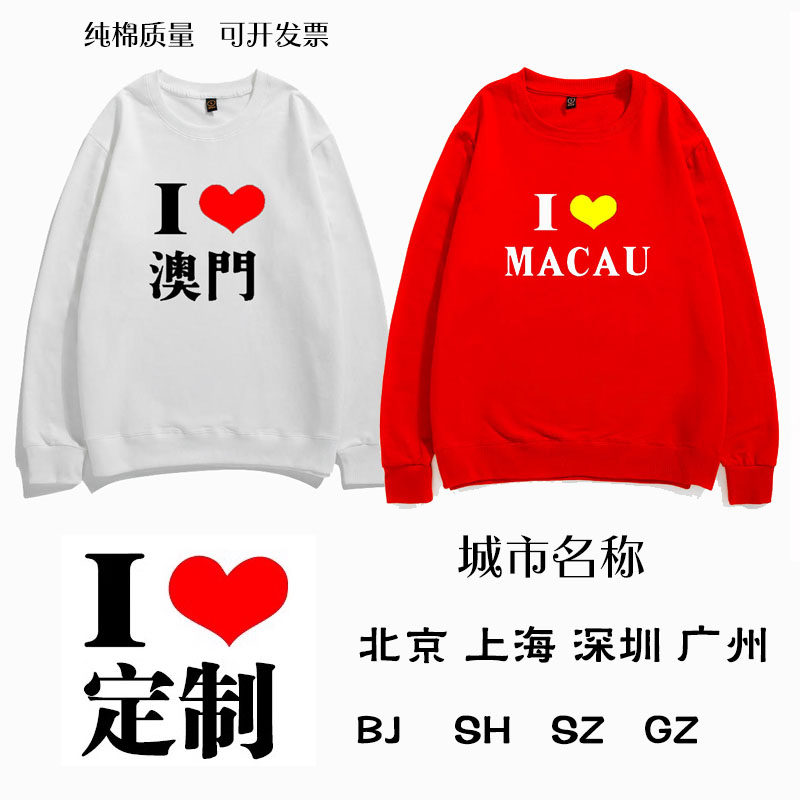 📚 我爱澳门Macau旅游纪念文化衫爱心长袖卫衣男女半袖定制城市名字