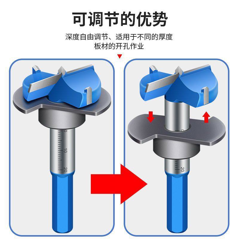 📚 木工可调节铰链开孔器打孔钻头木头圆形35mm专用合页扩孔器