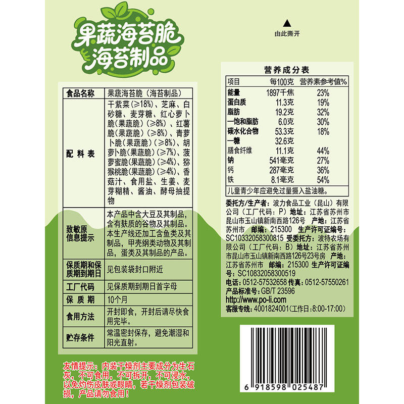 📚 波力果蔬海苔脆6包/10包/20包休闲儿童零食海苔蔬果干香酥脆片