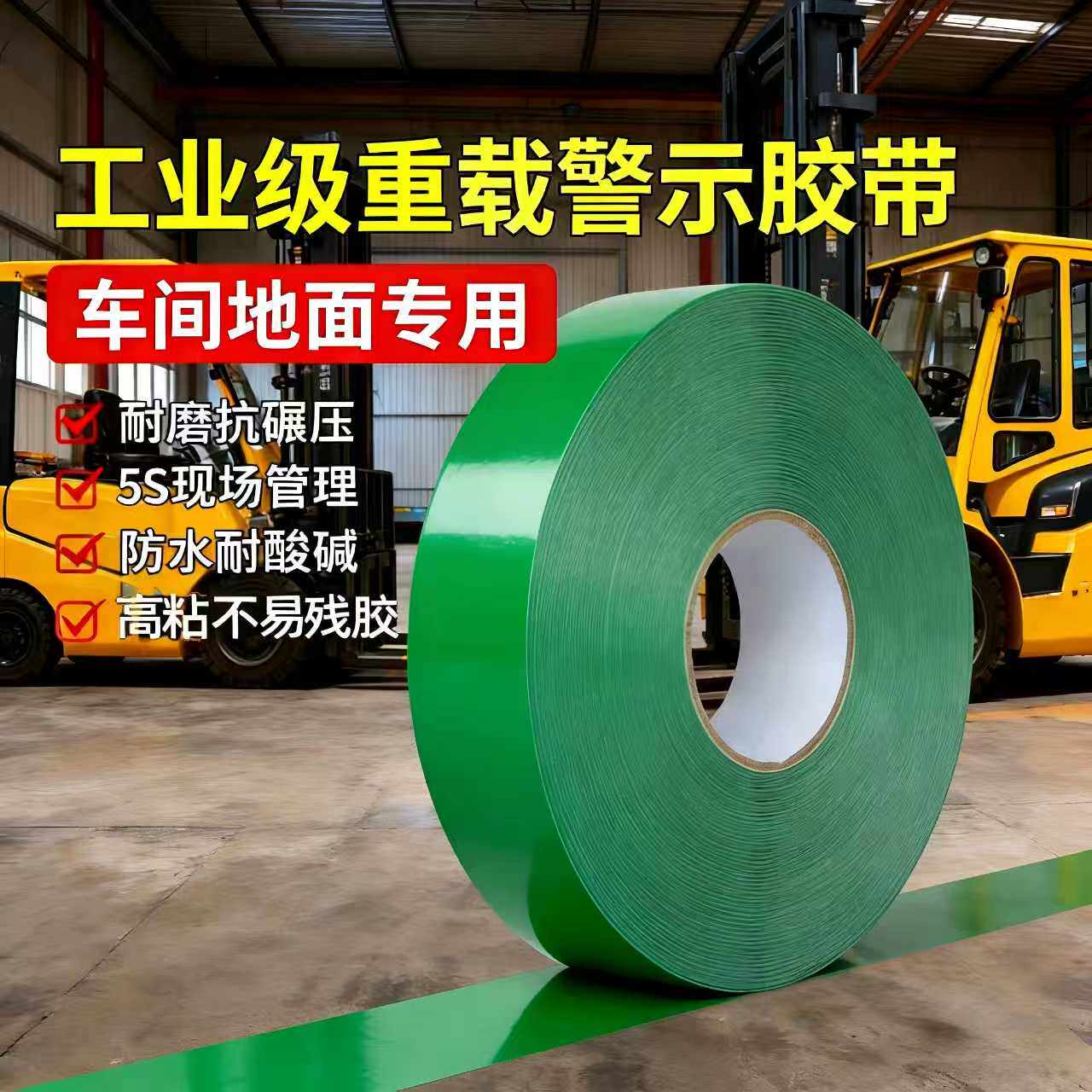 📚 绿色超厚耐磨纳米地胶带PVC橡塑加厚抗压地标线警示胶带工厂5S6S车间地板贴高粘度防水抗叉车碾压自带背胶