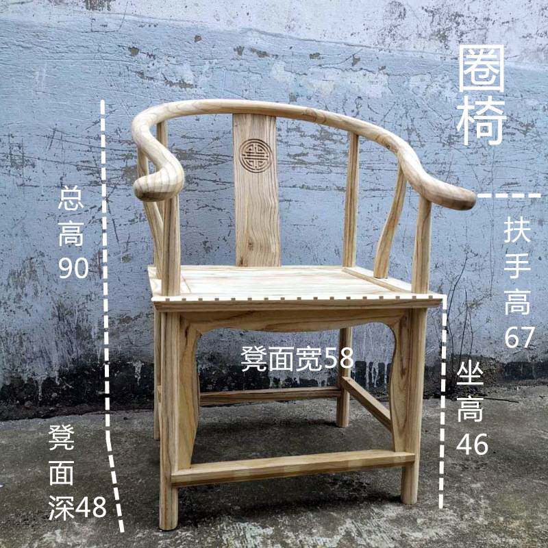📚 中式白胚椅子榆木圈椅仿古太师椅散装榫卯组装靠背椅官帽椅餐椅