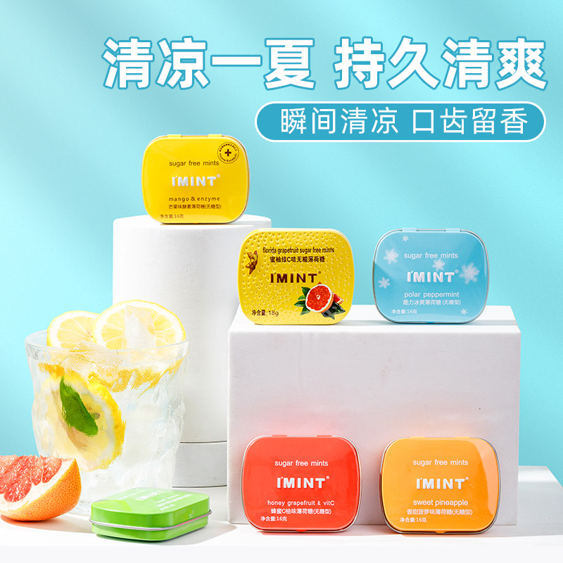 📚 IMINT无糖薄荷糖清新口气果味糖果持久清新约会口香便携小铁盒BY