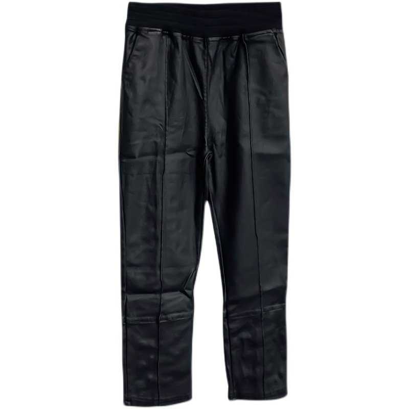 📚 八分哑光皮裤女春秋冬季新款九分直筒裤高腰显瘦盘扣复古欧货裤子
