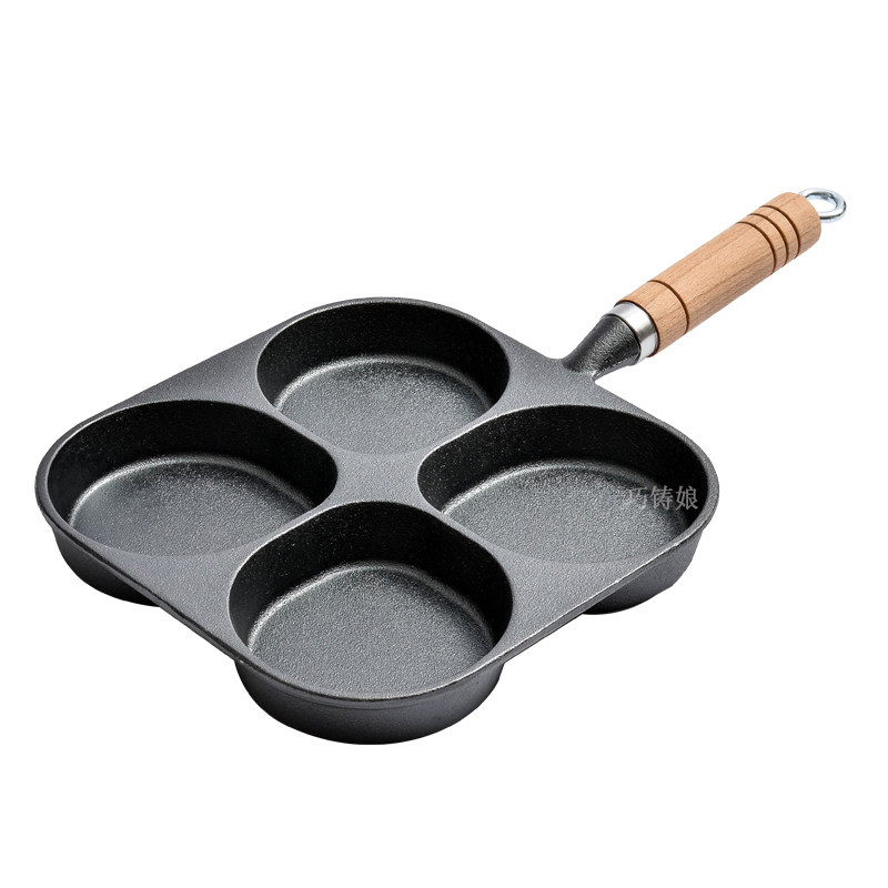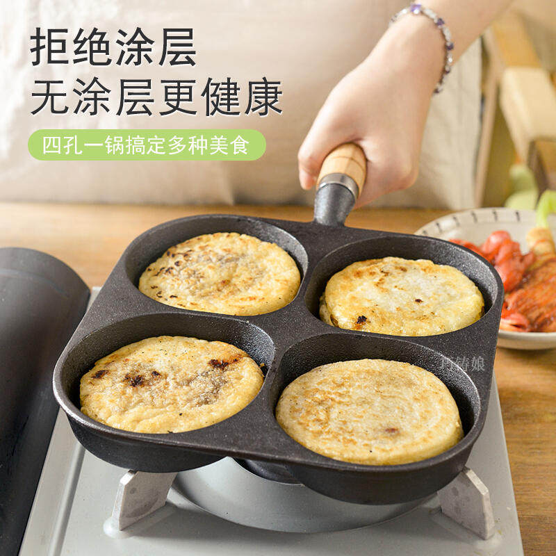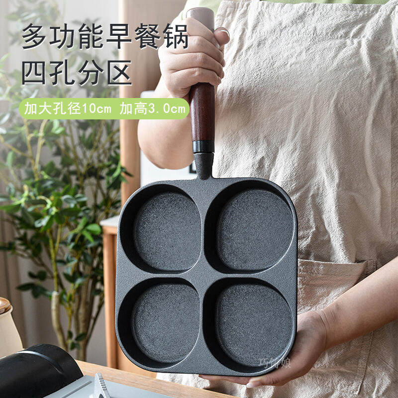 📚 鸡蛋汉堡锅加深铸铁四孔煎锅无涂层不粘蛋堡锅神器家用早餐煎蛋锅