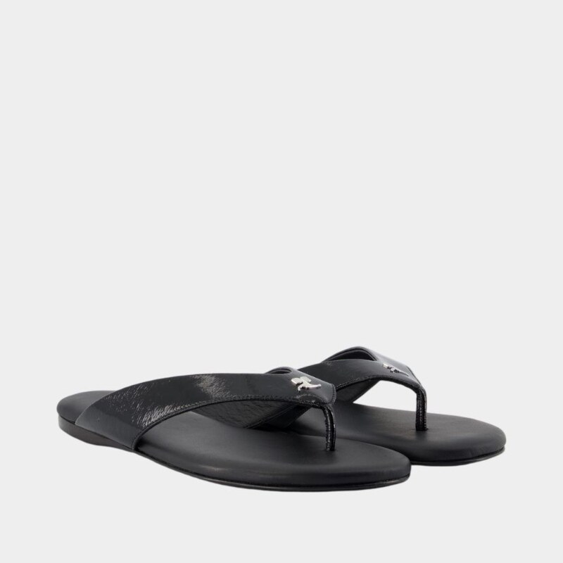 📚 活希源 Courreges 棉质黑色乙烯基凉鞋--