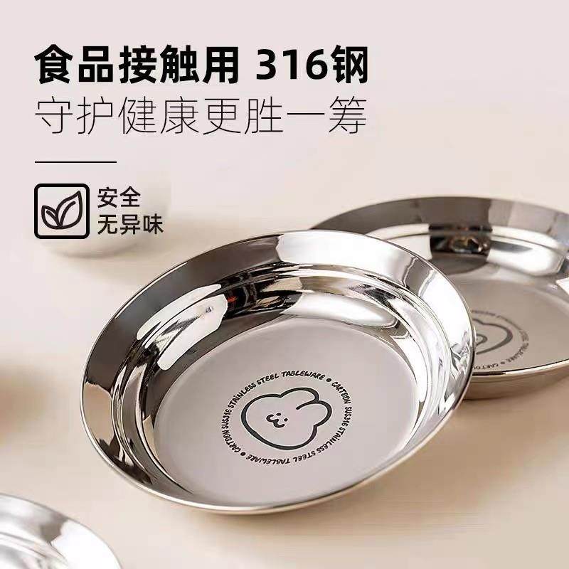 📚 不锈钢盆圆盘食品级不锈钢盘儿童吃饭盘中式宝宝卡通餐盘特厚菜盘