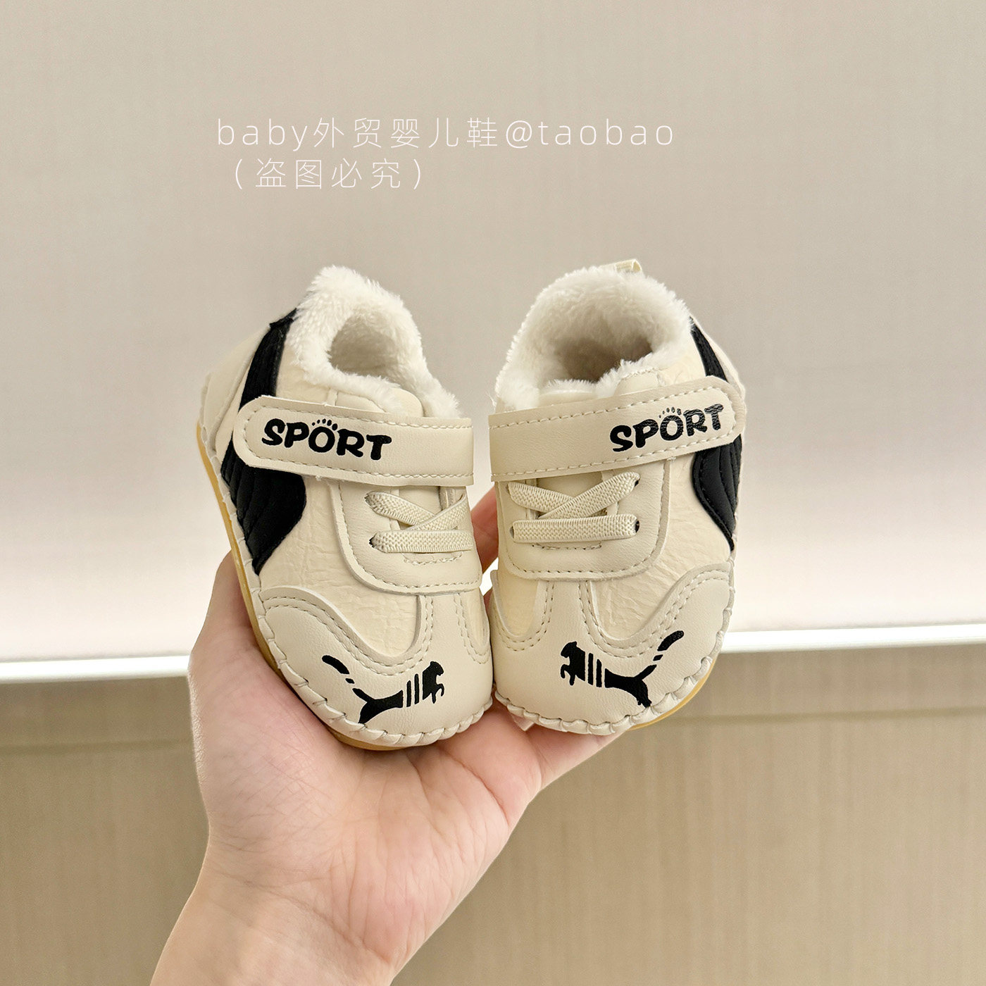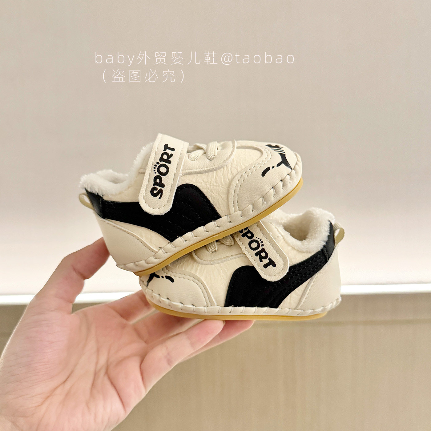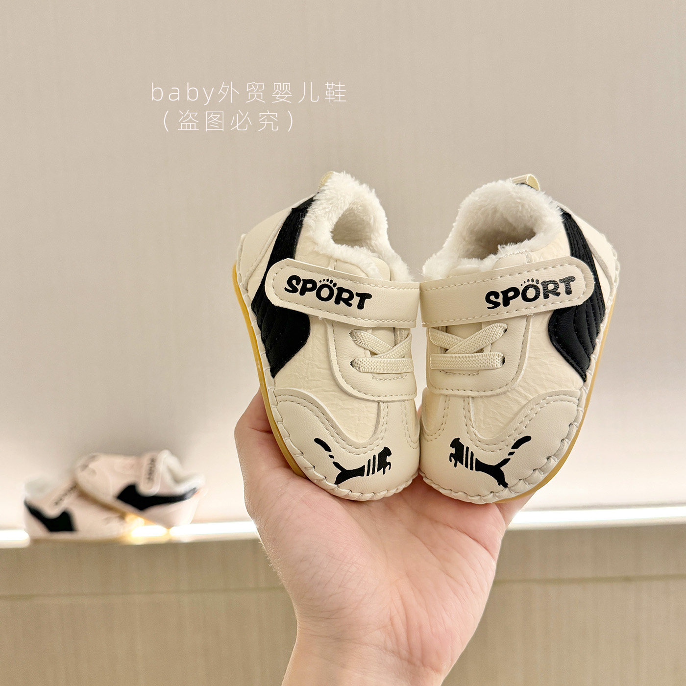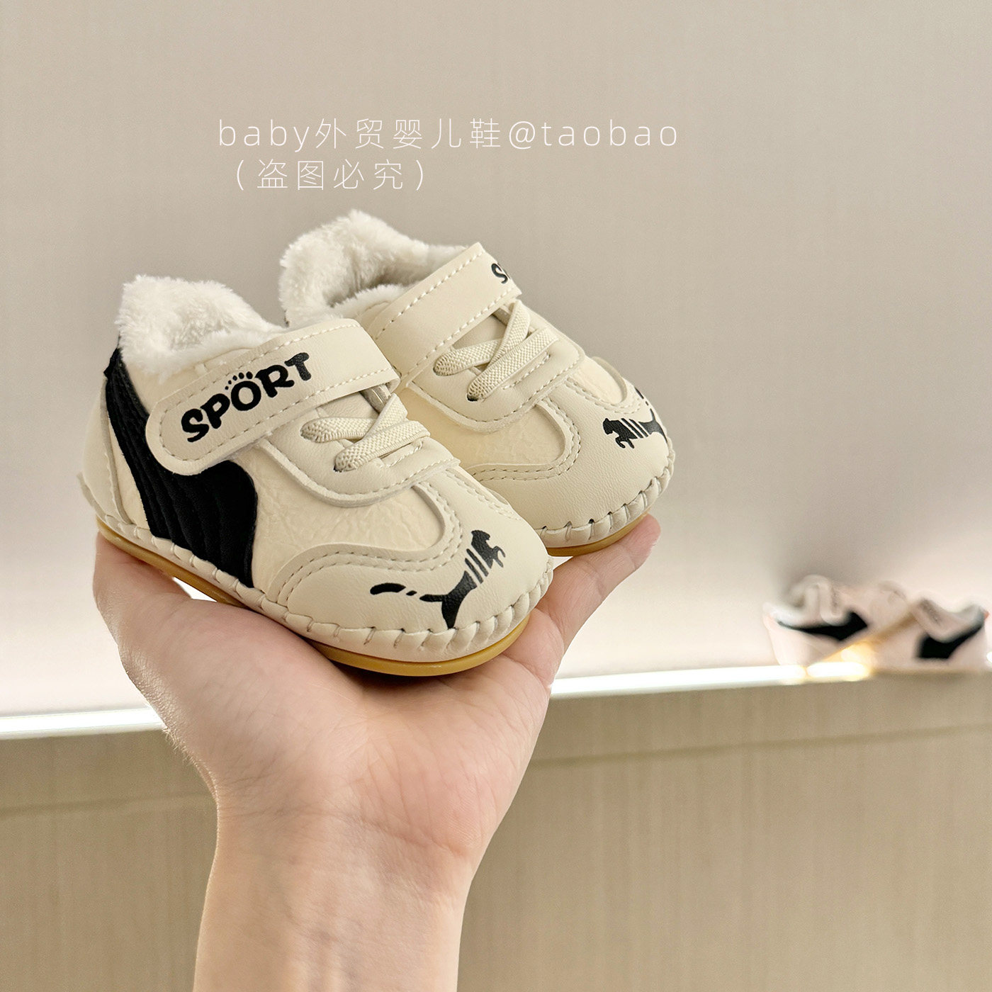 📚 冬天新生婴儿加绒鞋卡通可爱0-1岁男女宝宝不掉保暖软底学步鞋子