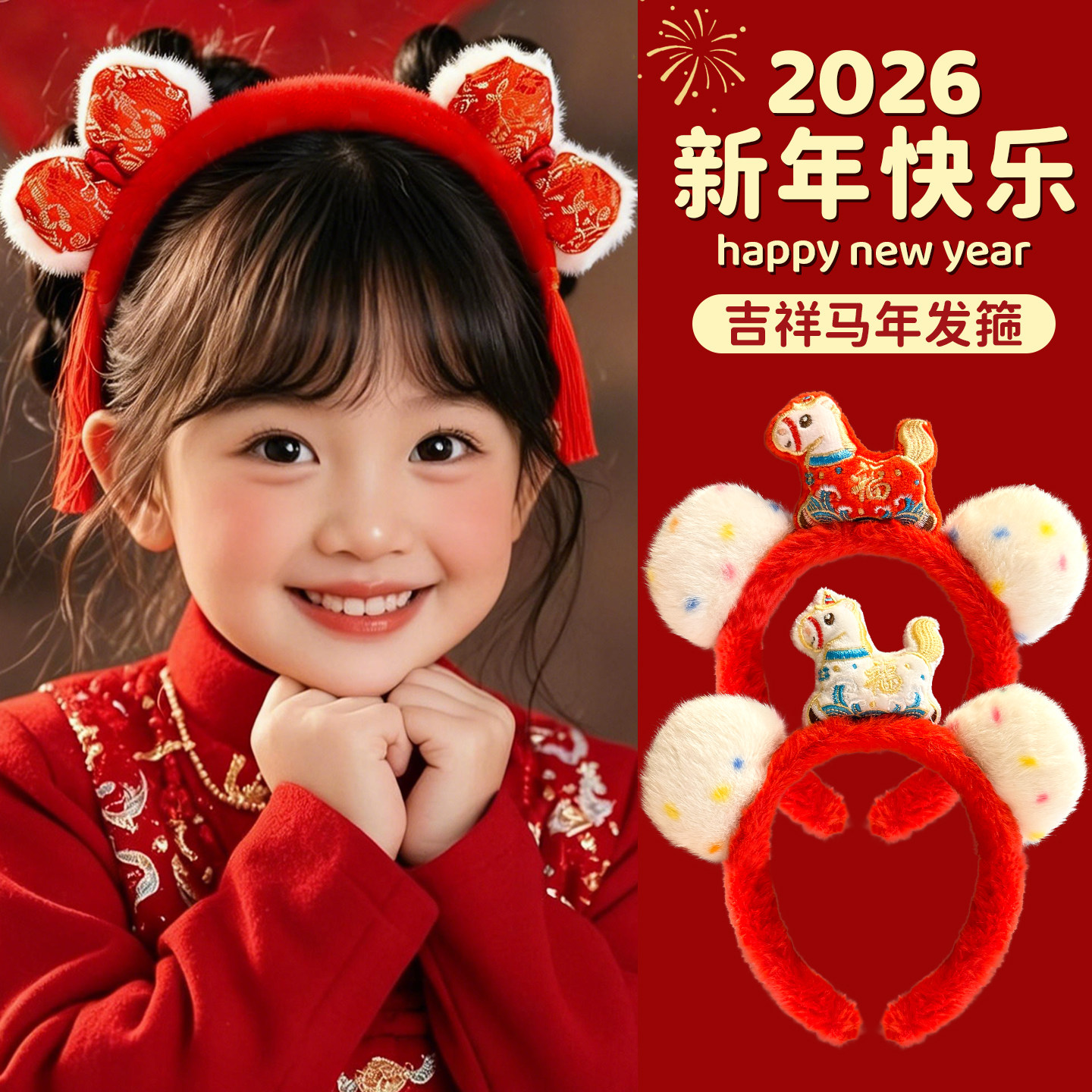📚 2026新年红色毛绒发箍女童可爱卡通压发冬季头箍洗脸儿童发卡头饰