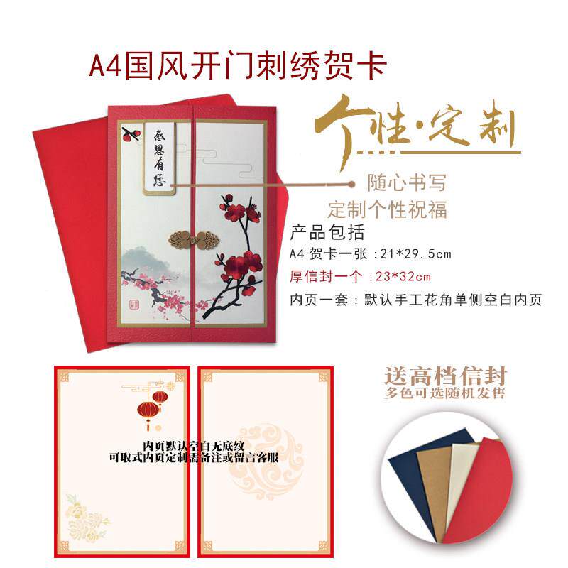 📚 言纸A4高端刺绣复古定制38节感谢祝福慰问送领导老师长辈退休贺卡