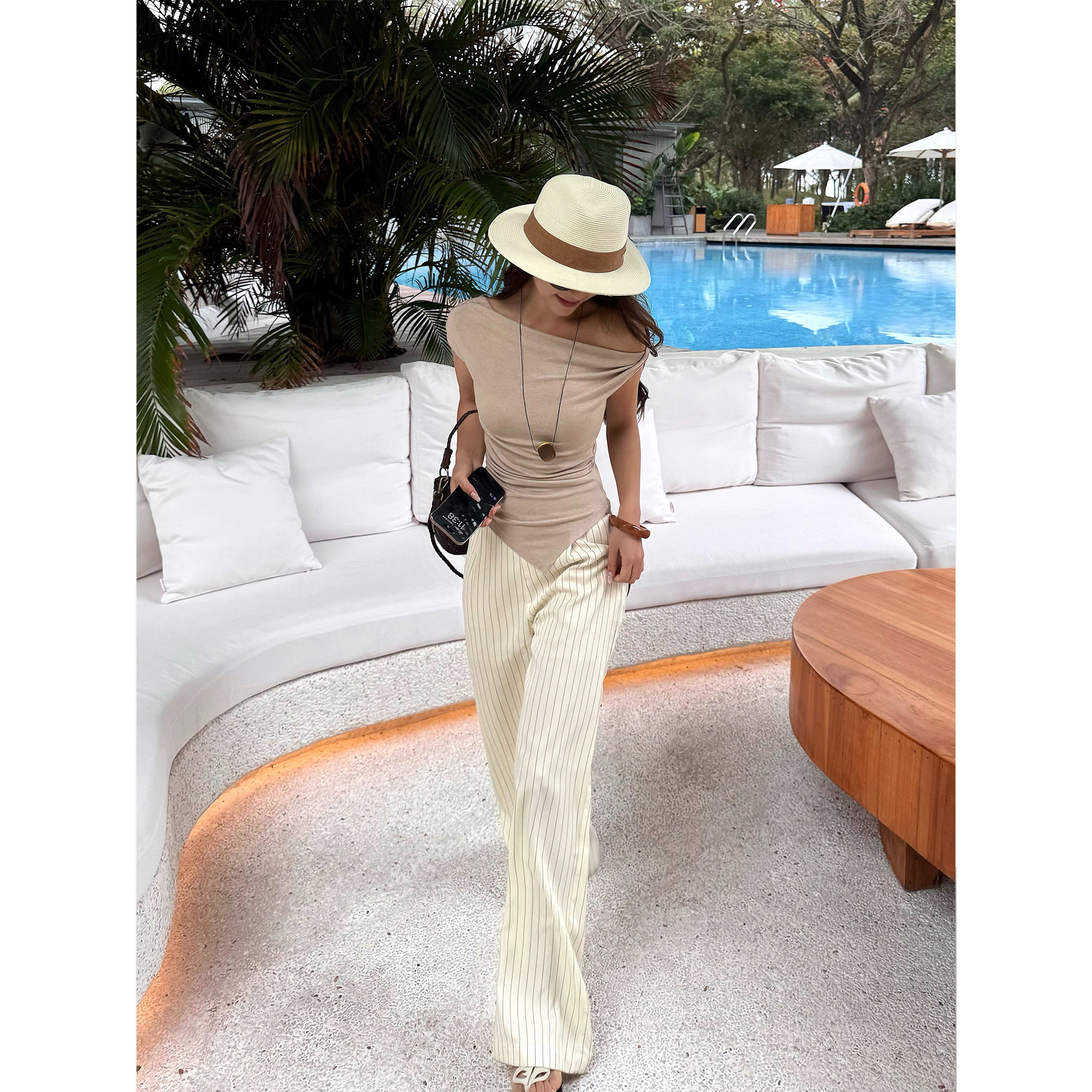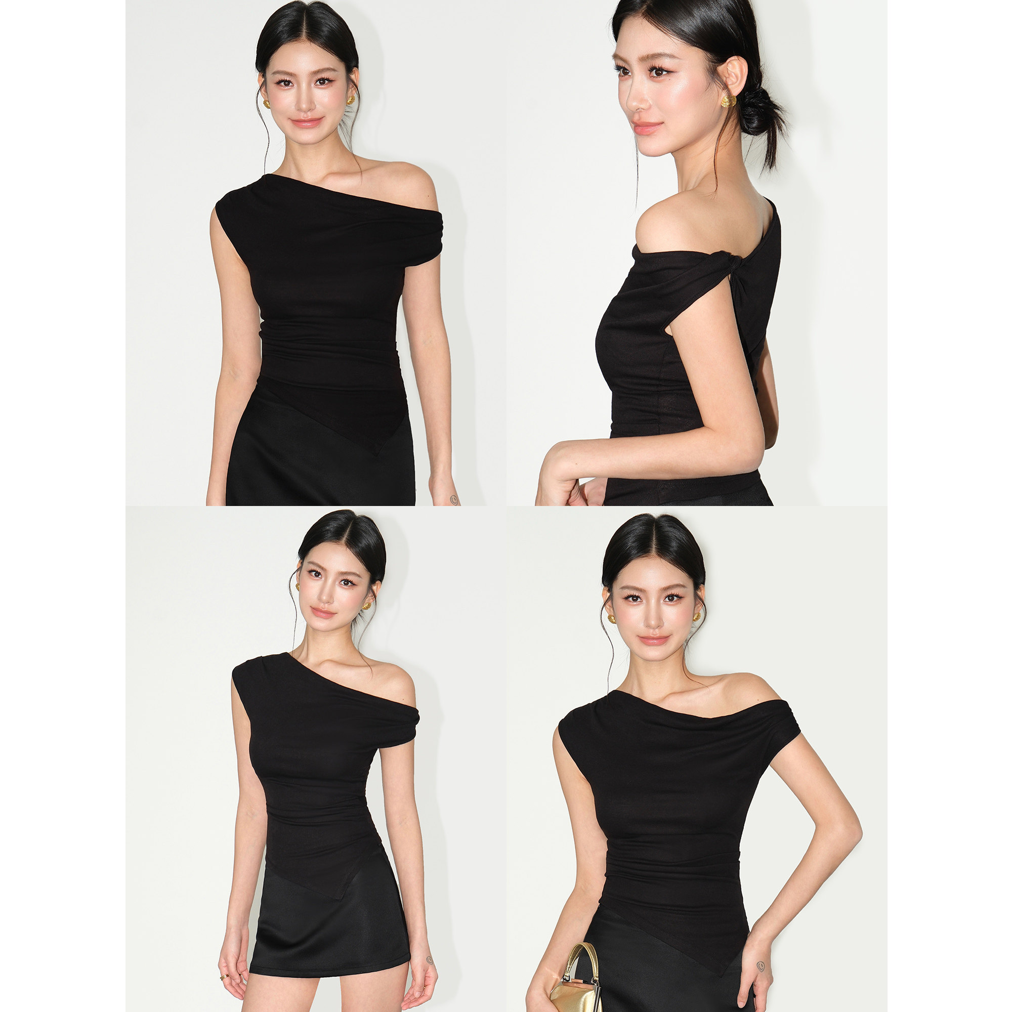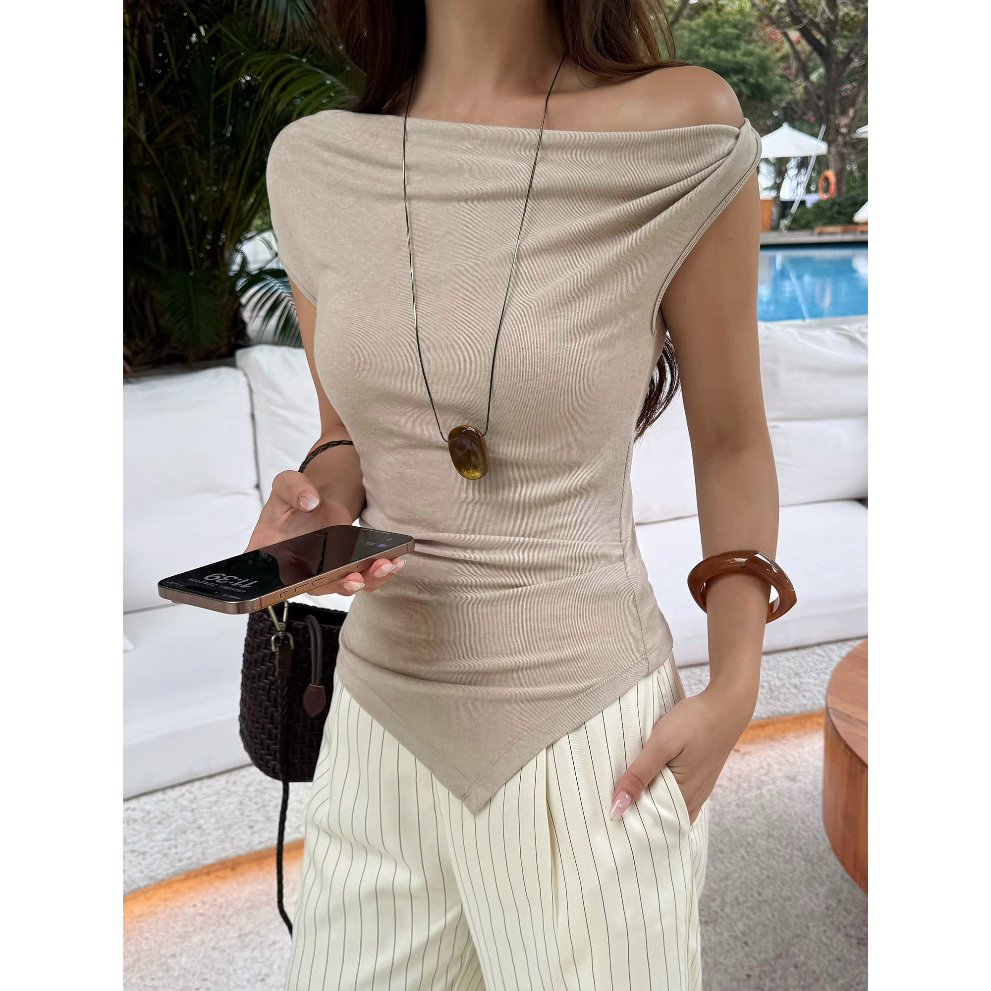 📚 NEVA HU荡领吊带背心女夏季新款辣妹修身设计感不规则斜肩t恤上衣