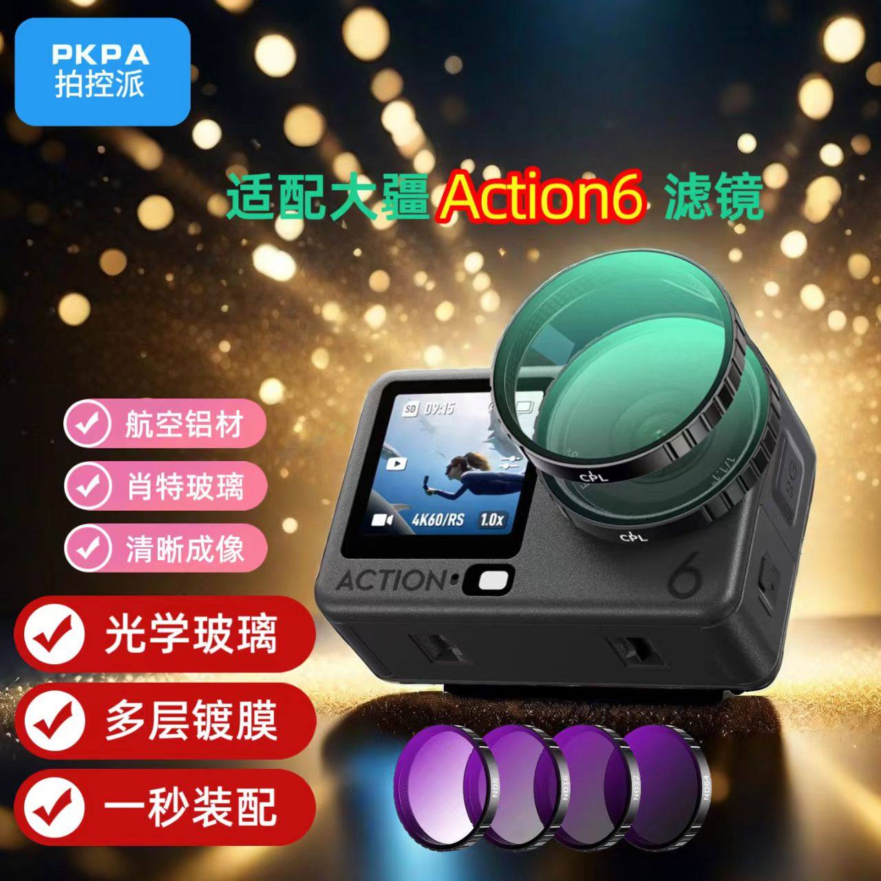 📚 PKPA大疆Action6运动相机滤镜光学玻璃多层镀膜一秒装配