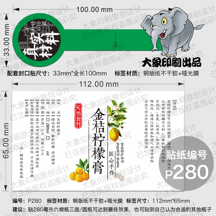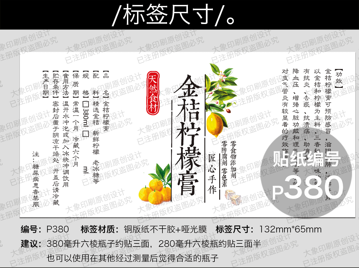 📚 金桔柠檬膏瓶贴不干胶定制标签哑光贴纸牛皮纸印刷定做logo贴包装