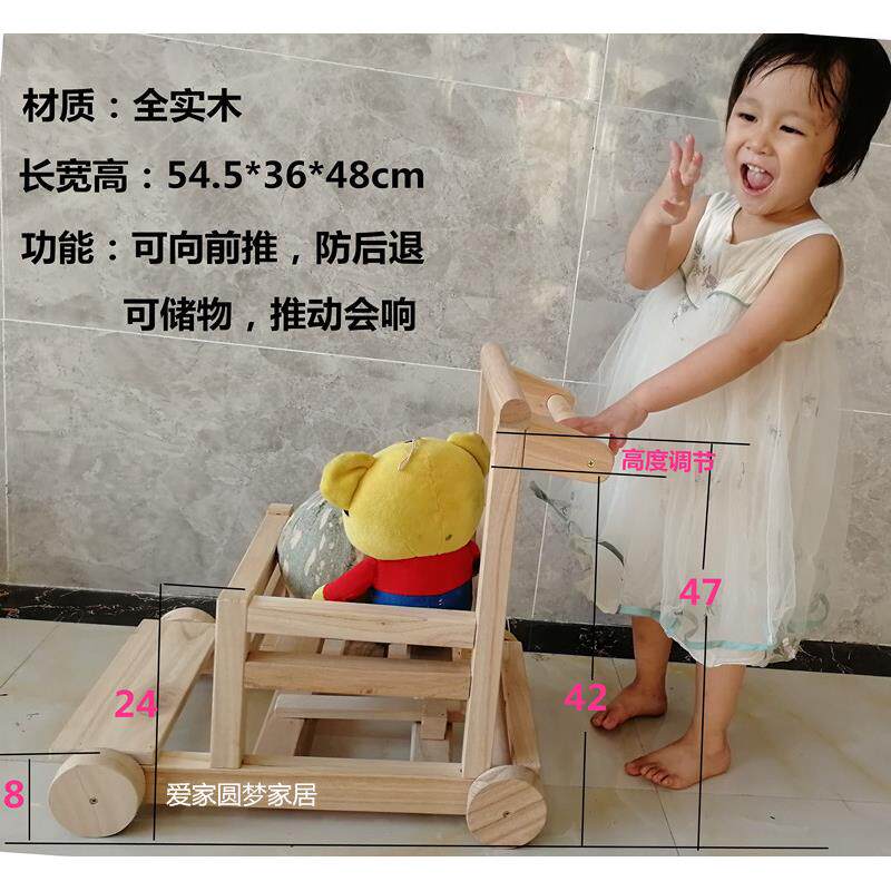 📚 传统婴儿助学步老式手推车1-3岁实木质宝宝走路辅助车防后退礼物