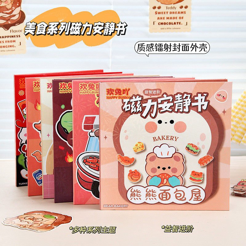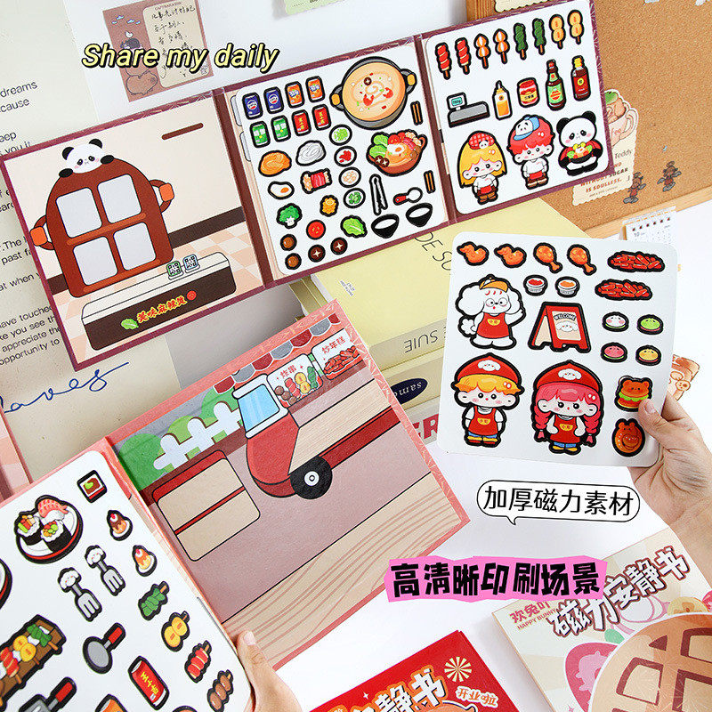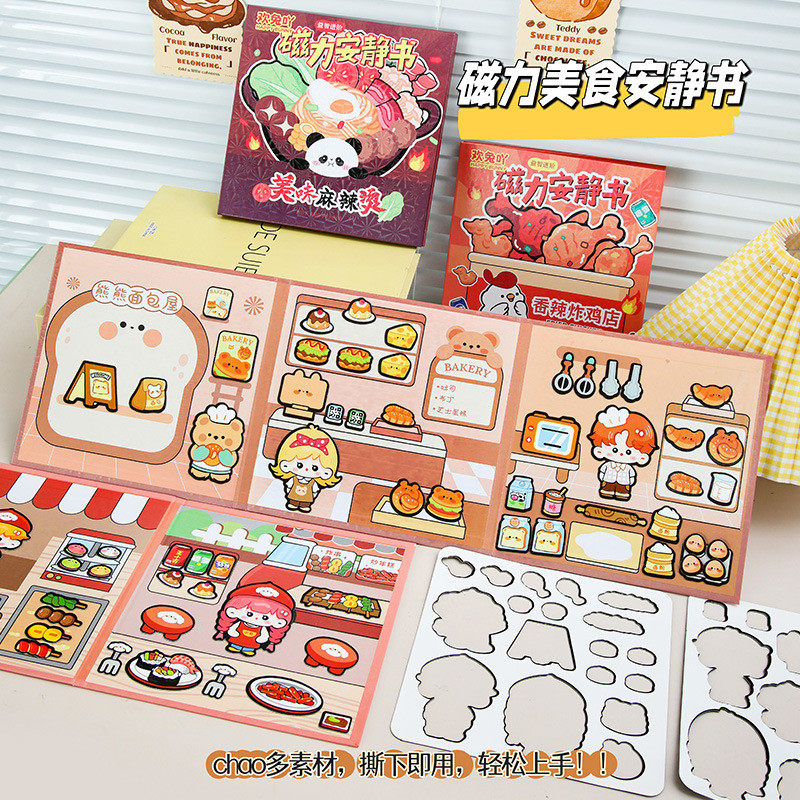 📚 新款美食小吃磁力免裁剪安静书六种组合女童益智早教玩具