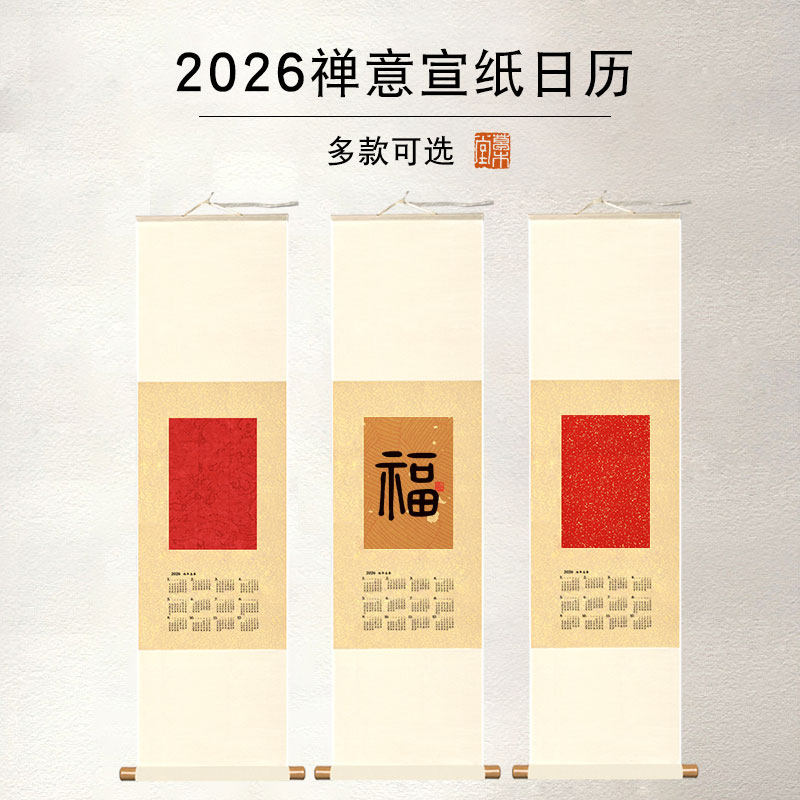 📚 【挂历】2026年马年日历卷轴新中国风宣纸日历书法作品纸蜡染万年红洒金居家装饰新年赠送礼物创意宣纸挂历