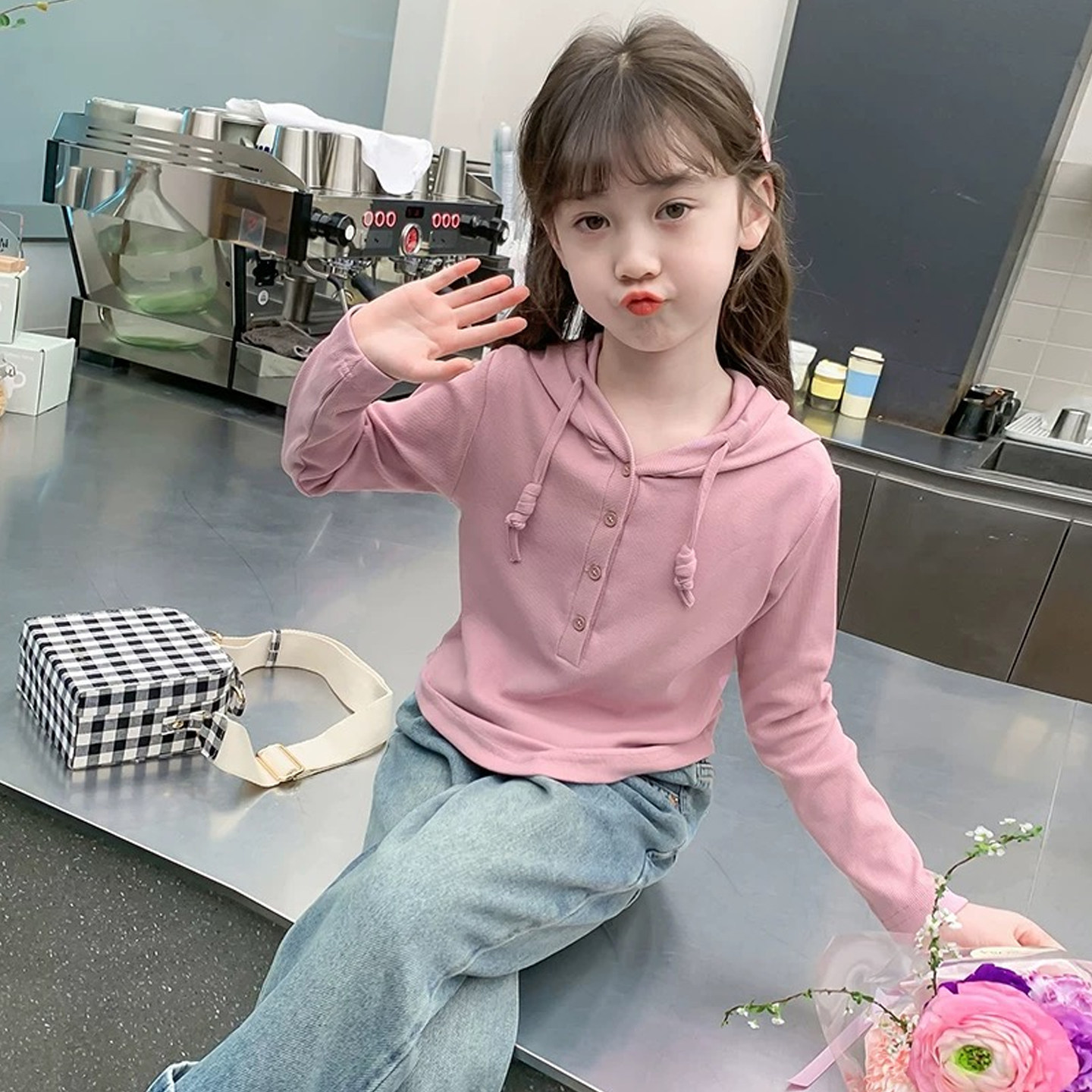 📚 女大童连帽长袖t恤春秋季2026新款洋气时髦儿童宝宝外穿薄款上衣