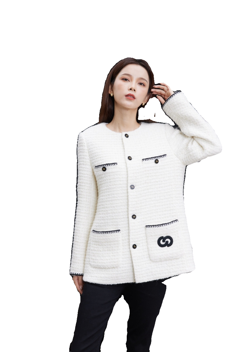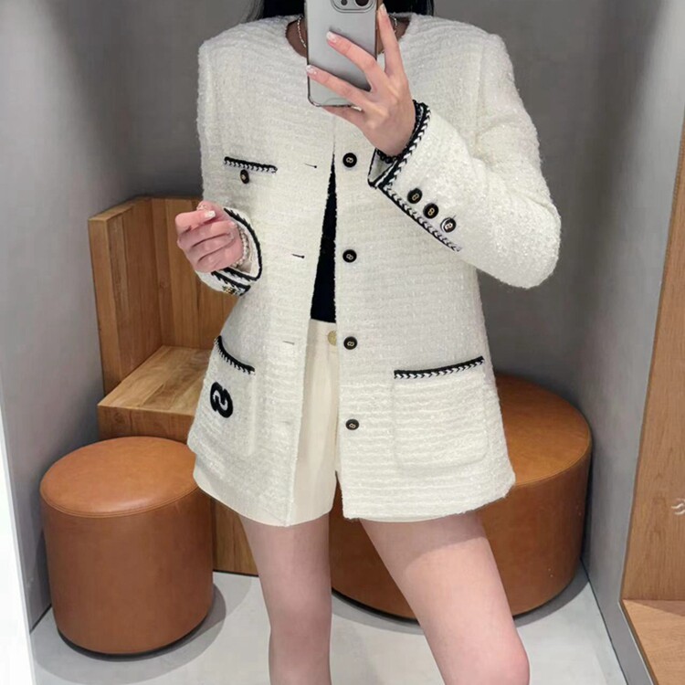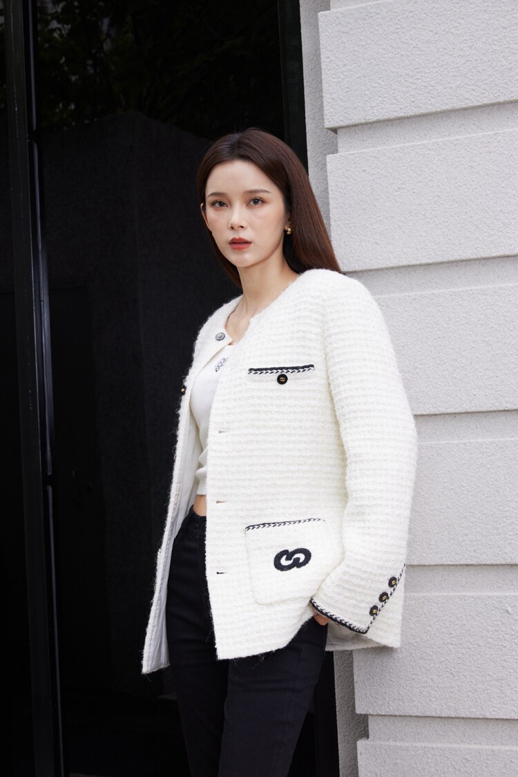 📚 CHESTER CHARLES 2023冬季女款法式纯白夹棉小香风外套香港代购