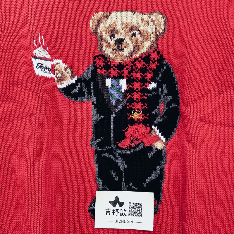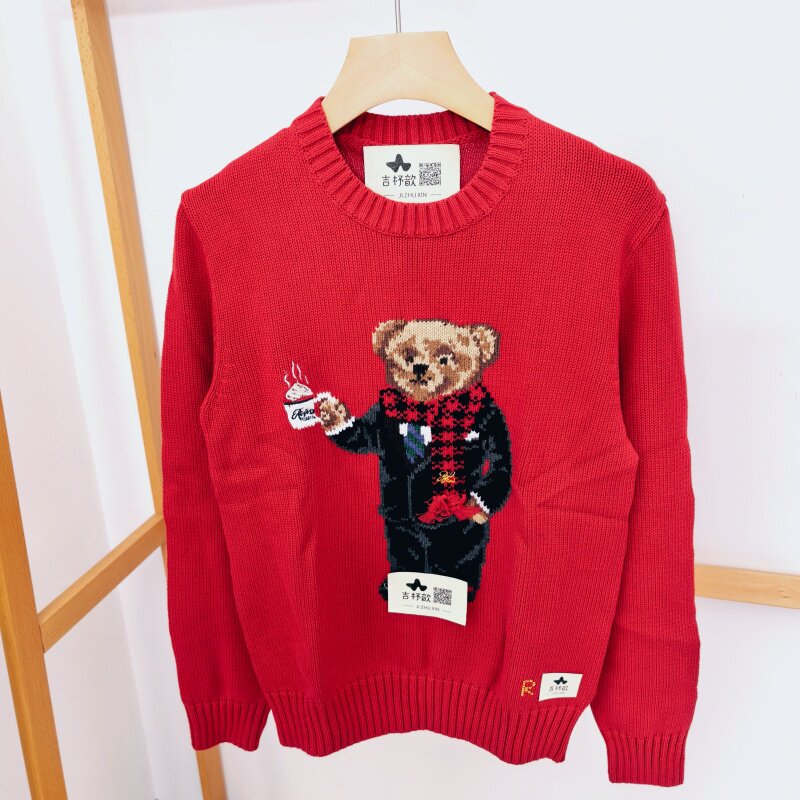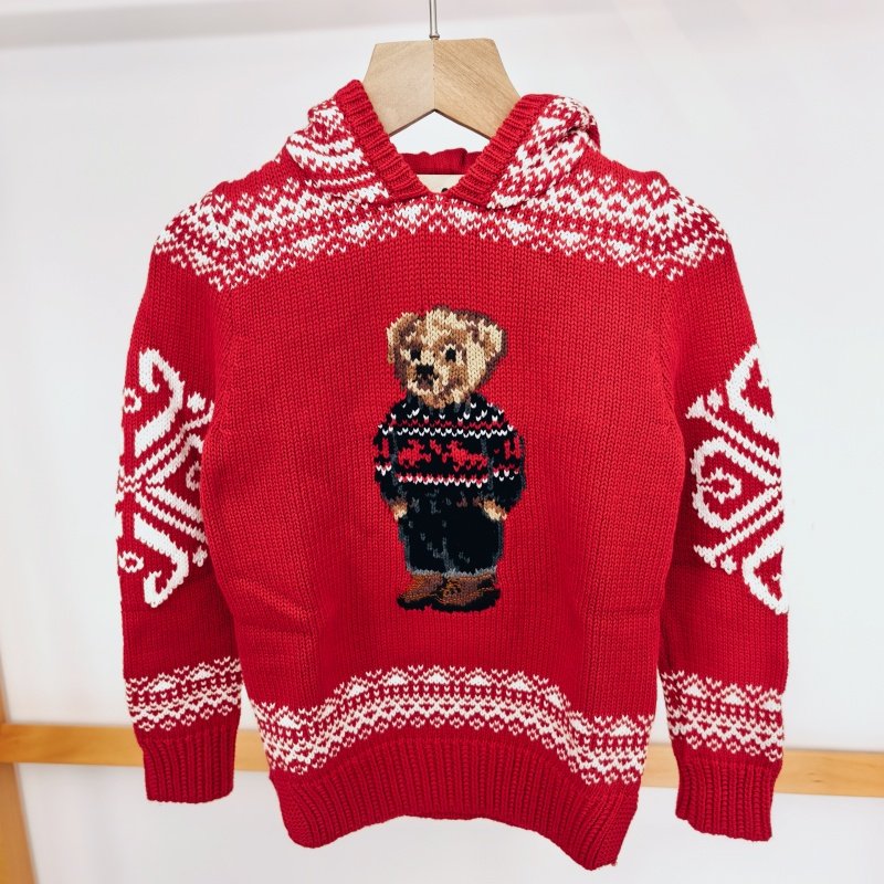 📚 儿童小熊毛衣 吉杼歆RL女童连帽长袖雪花小熊套衫圆领童趣针织衫