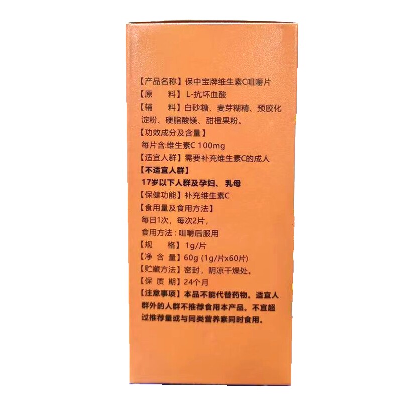 📚 【天猫正品】保中宝牌维生素C咀嚼片60片每片含vc100mg成人